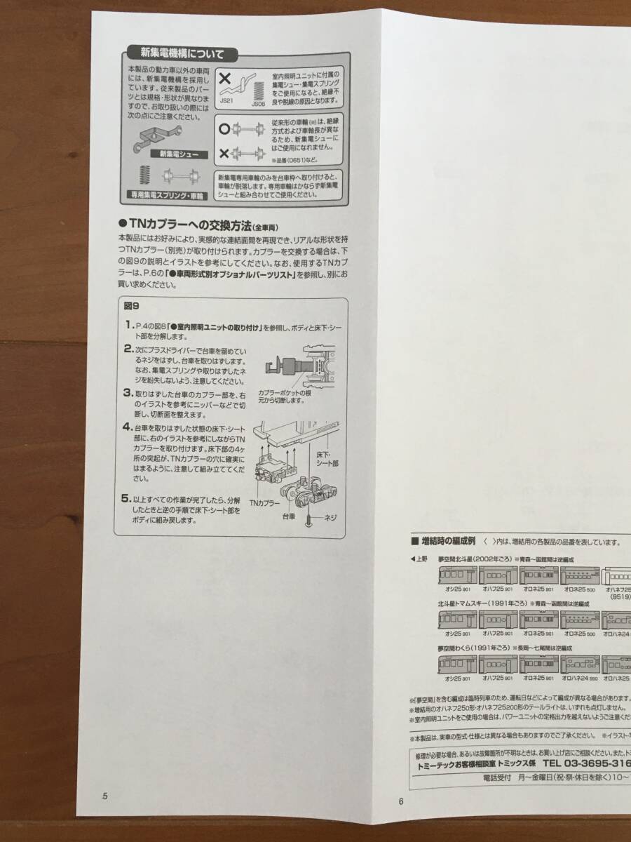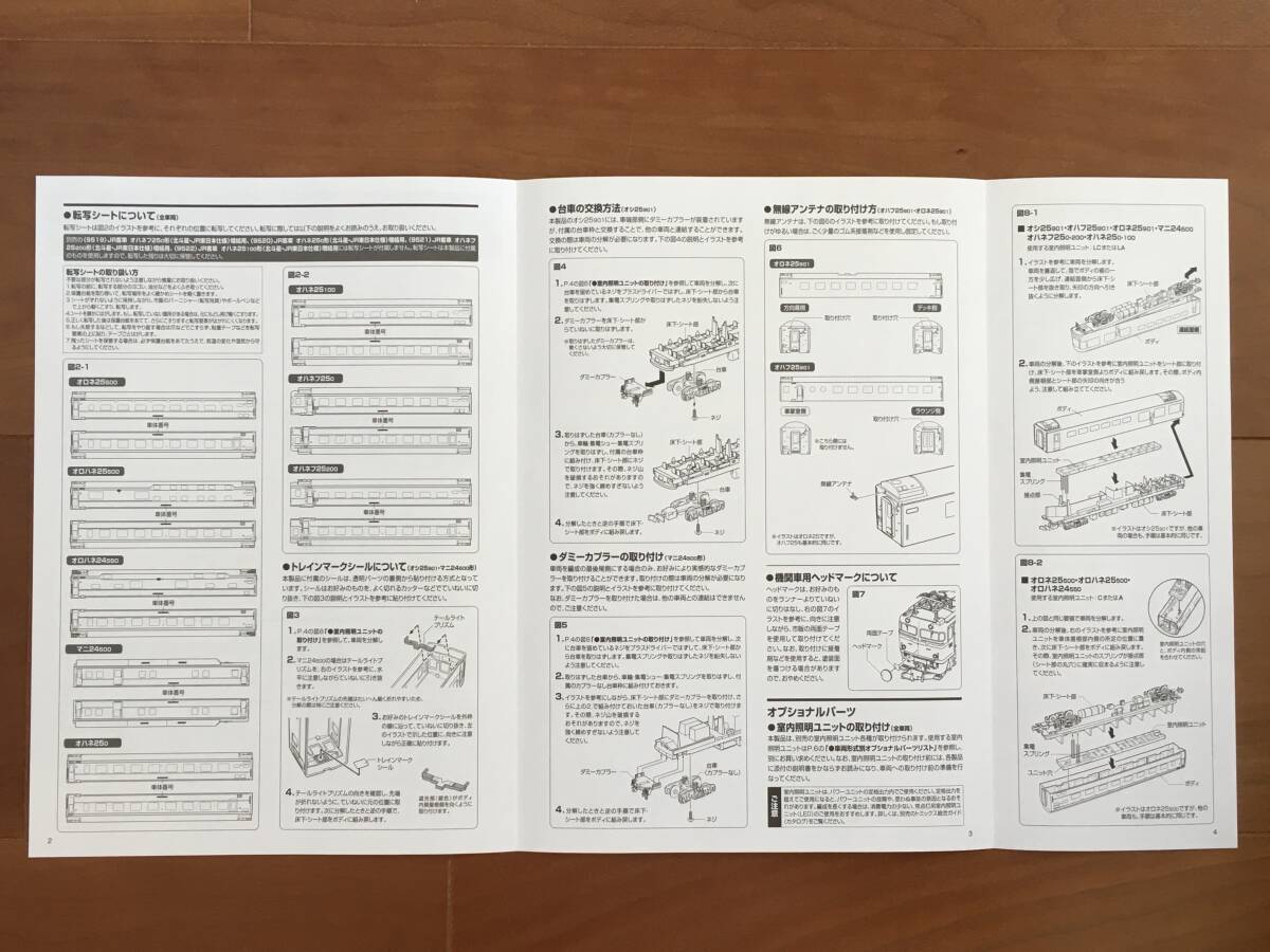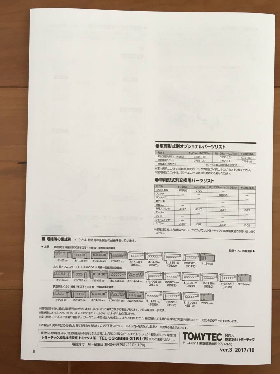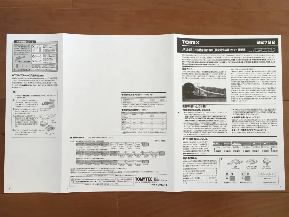 TOMIX 92792 JR 24系25形特急寝台客車(夢空間北斗星) 説明書 1枚