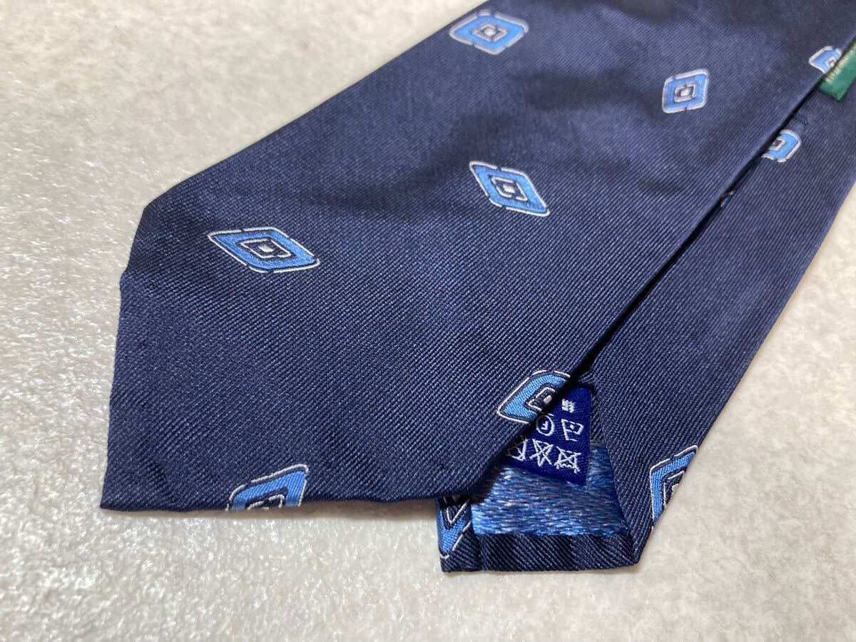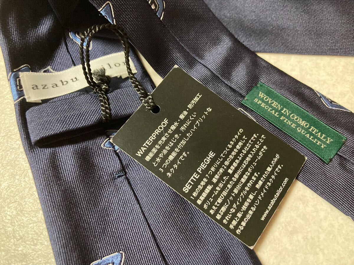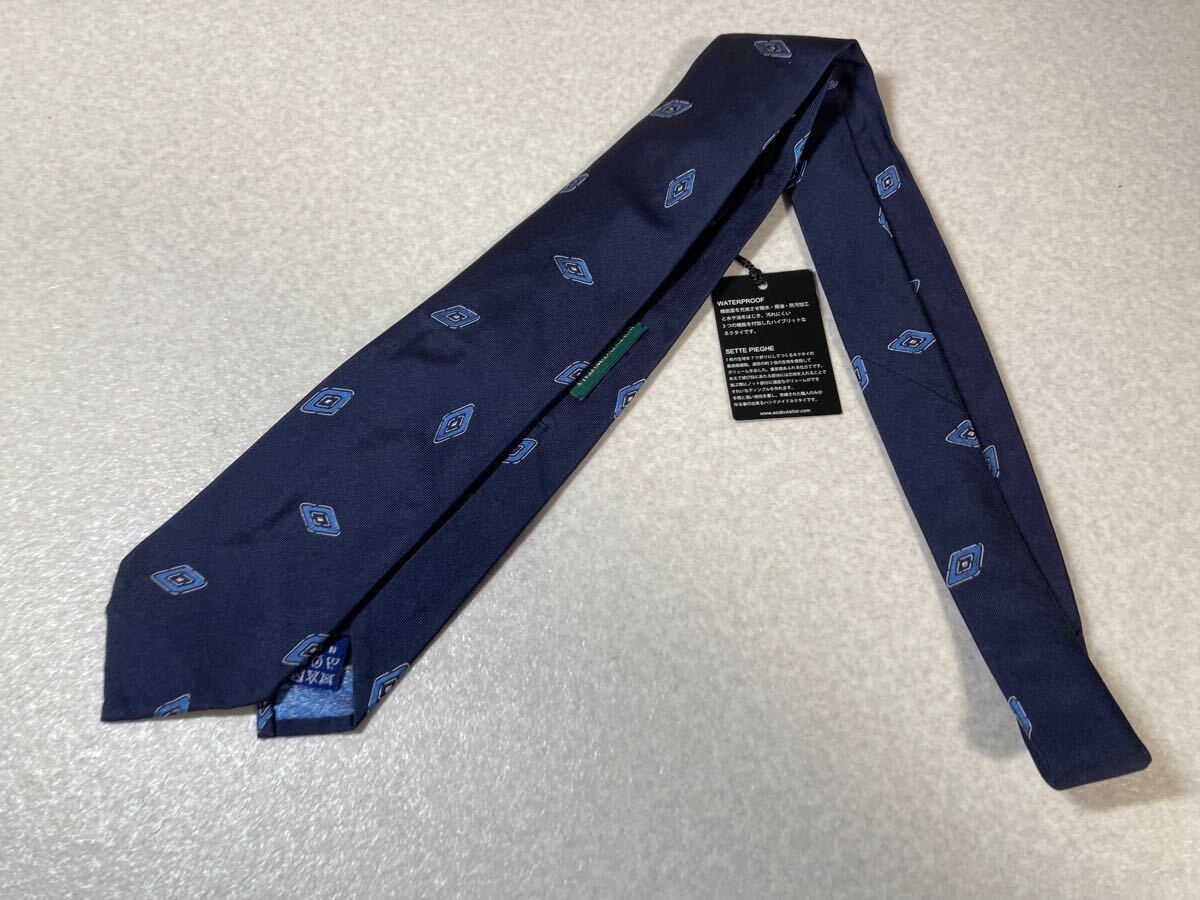 新品 麻布テーラー(日) 本物のセッテピエゲ ネイビー小紋その2 シルク100% コモ産ジャガード生地 日本製 定価1.7万円