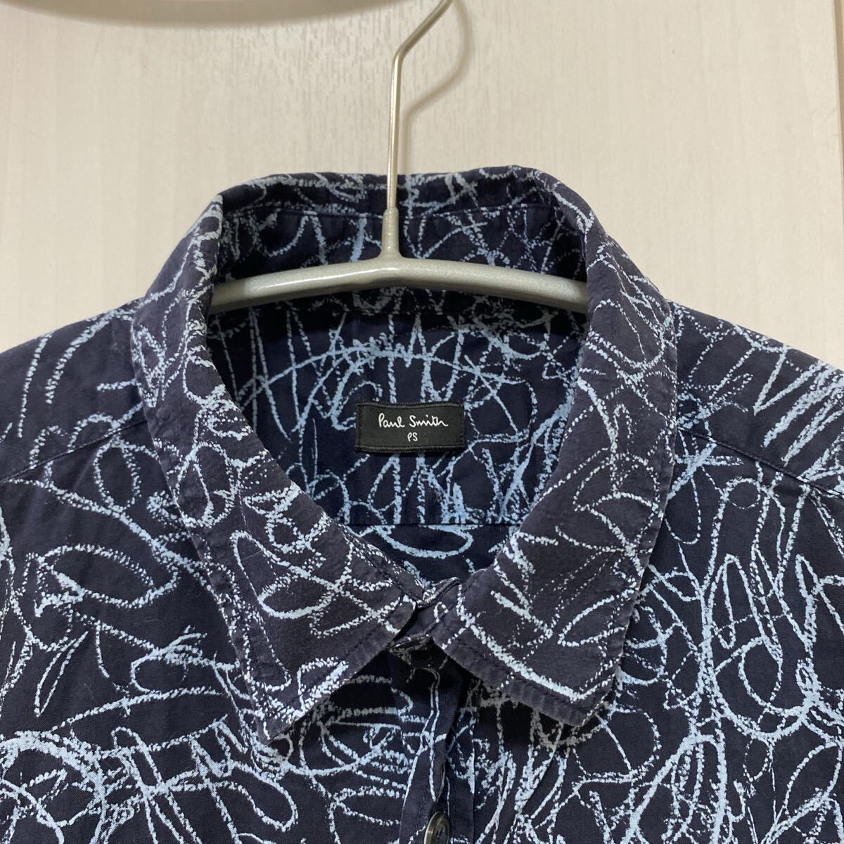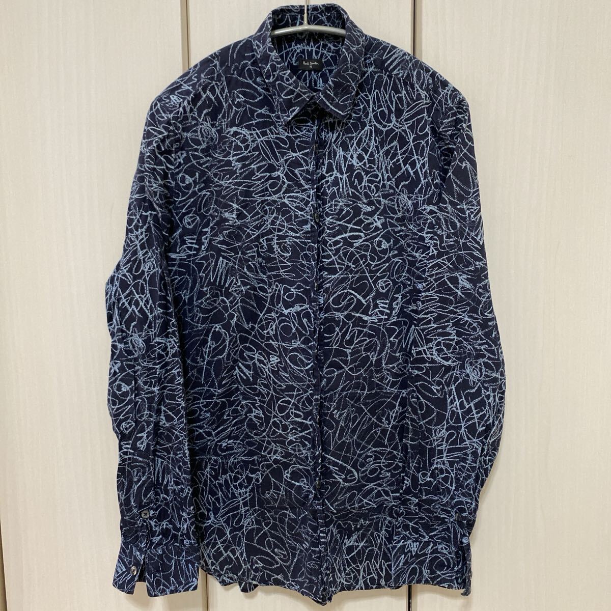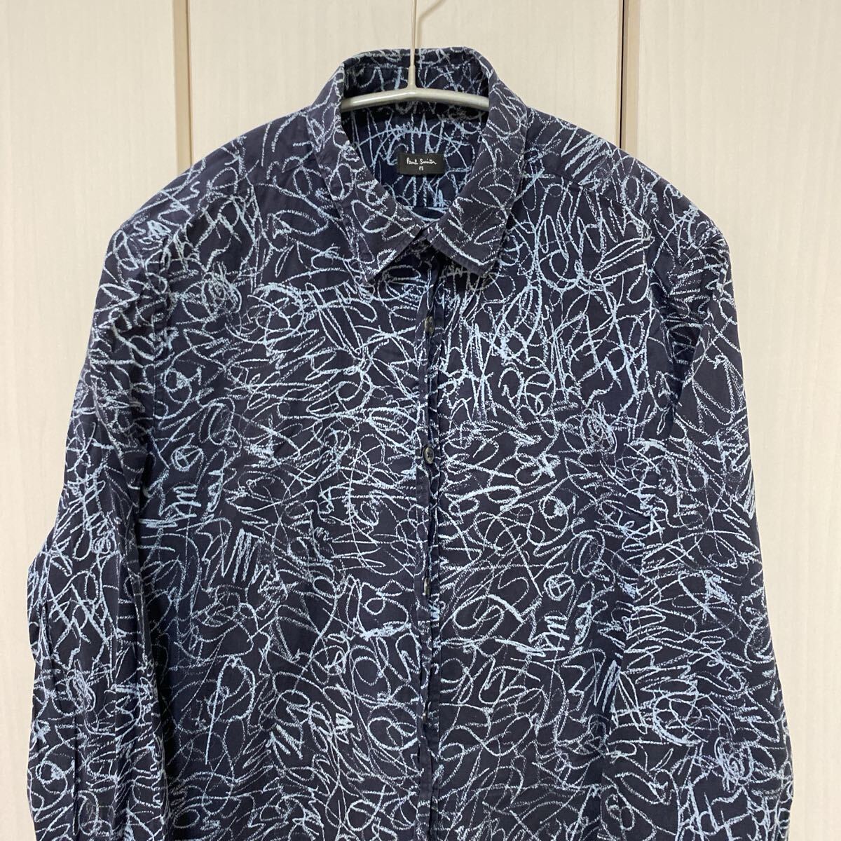 ポールスミス PaulSmith 総柄シャツ 落書き調 ネイビー 長袖シャツ Sサイズ