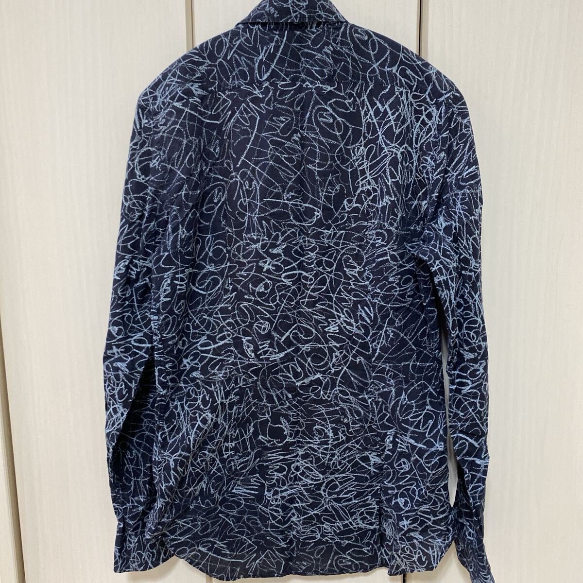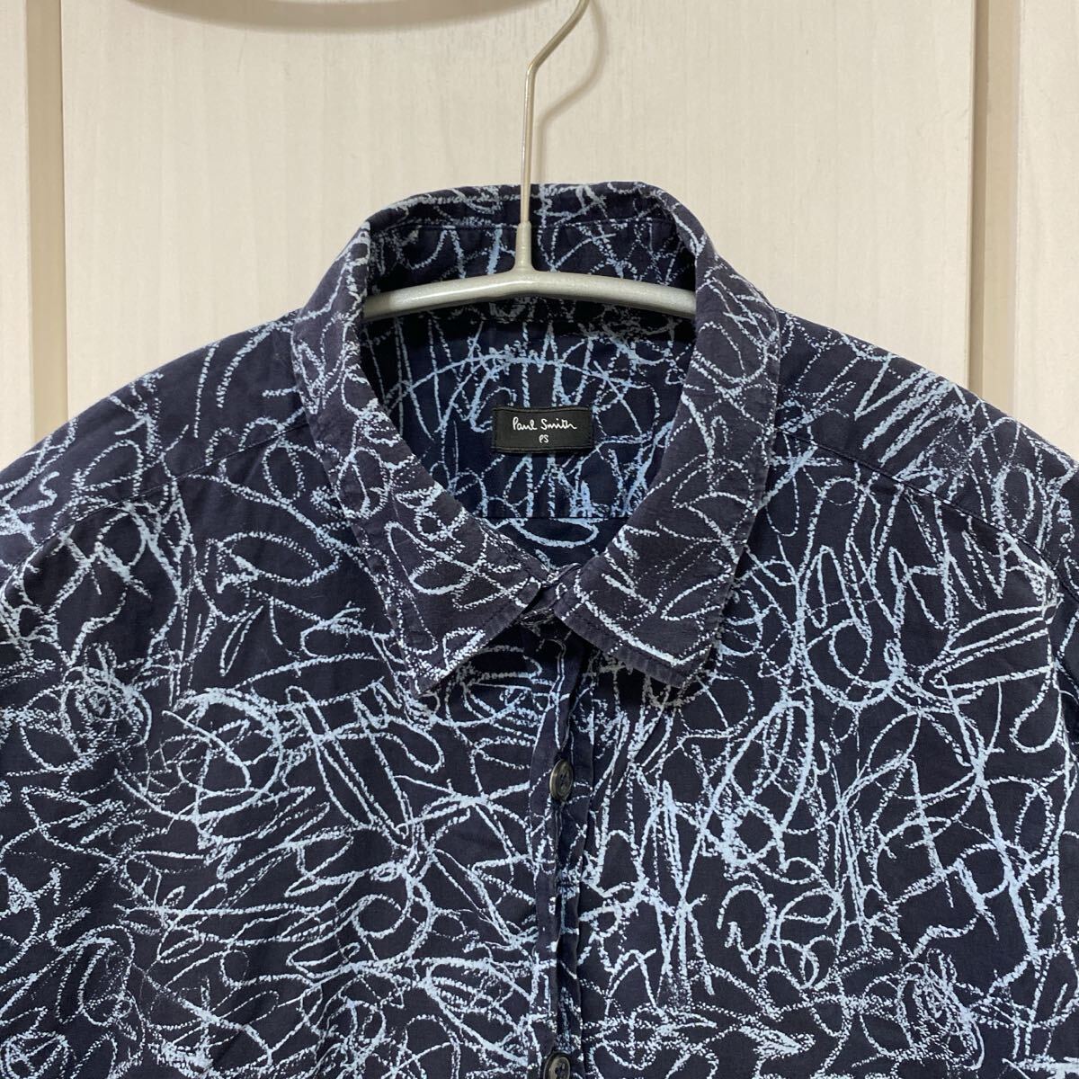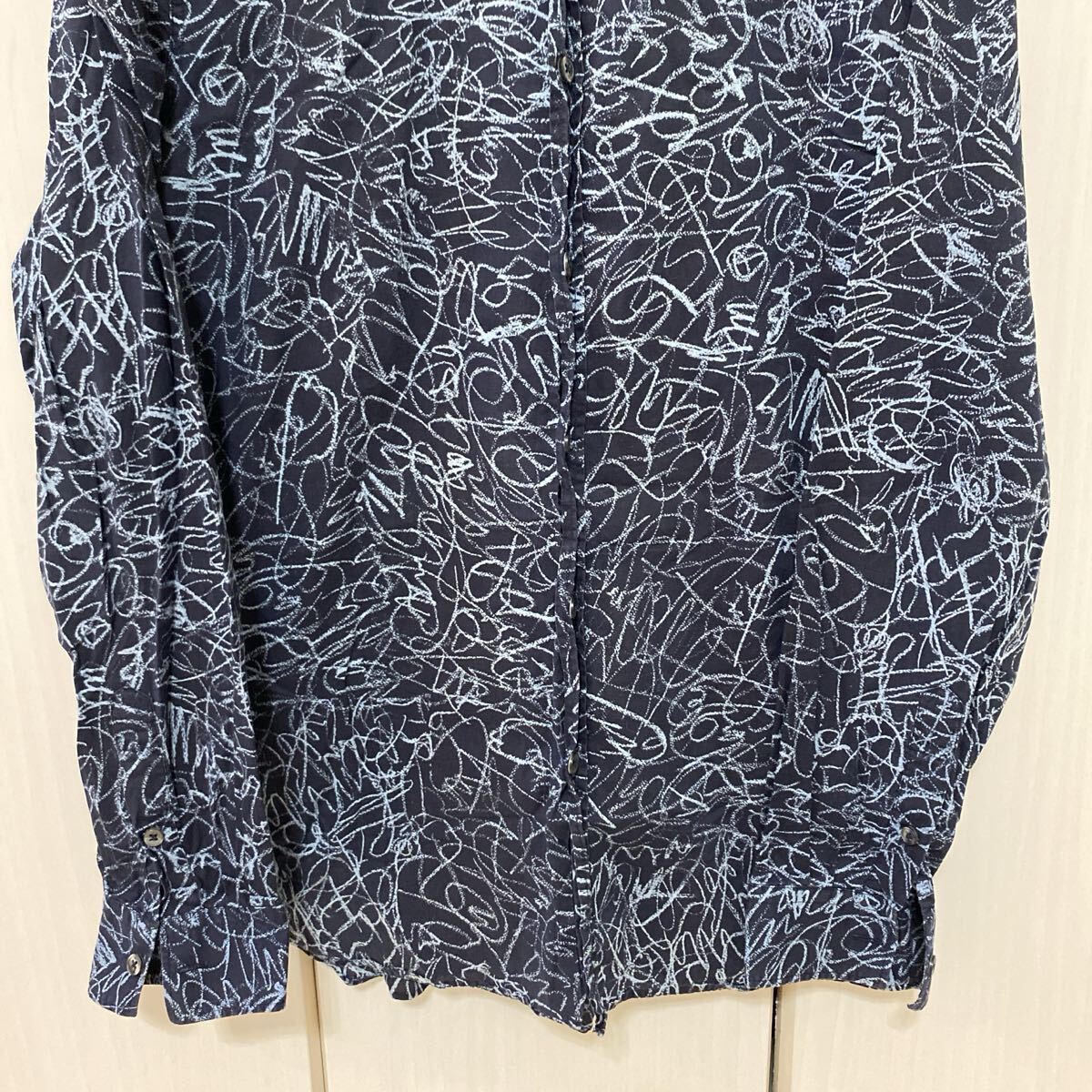 ポールスミス PaulSmith 総柄シャツ 落書き調 ネイビー 長袖シャツ Sサイズ