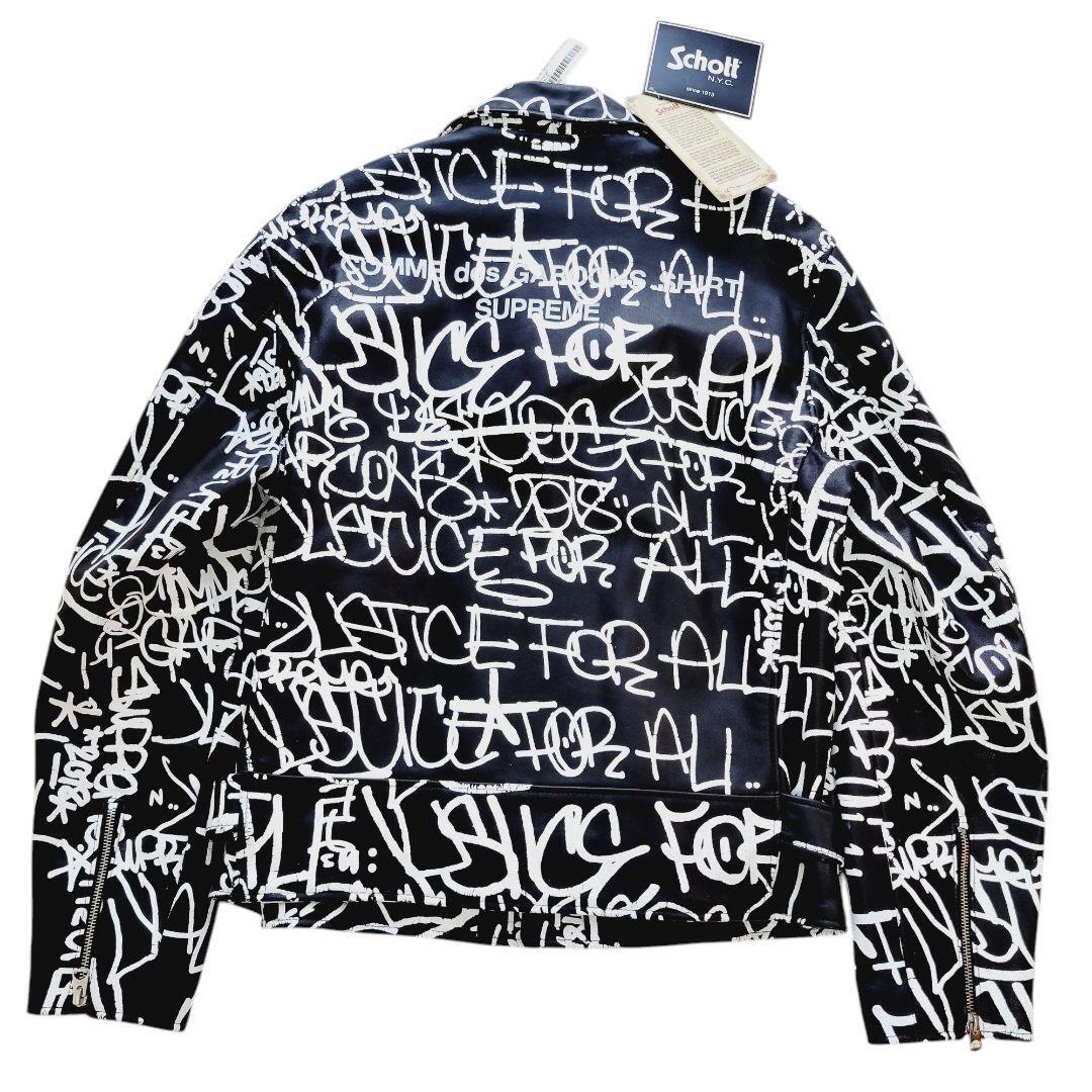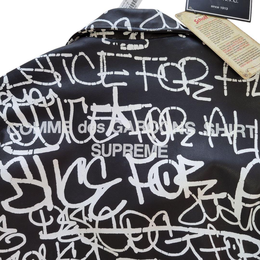 【新品未使用タグ付き】サイズL シュプリーム コムデギャルソン ショット トリプルネームコラボ ペイント パーフェクト ダブル レザー ライダースジャケット 本革