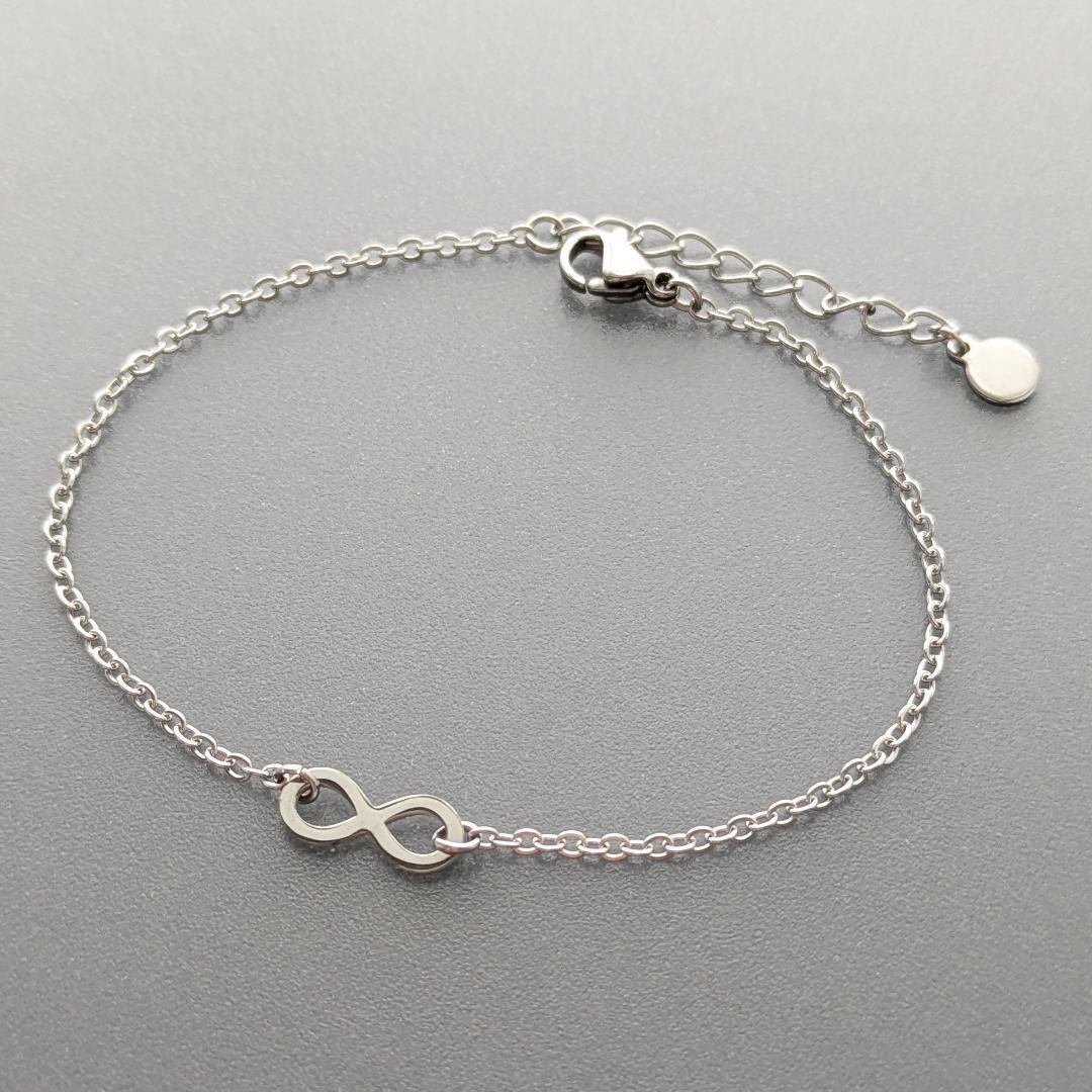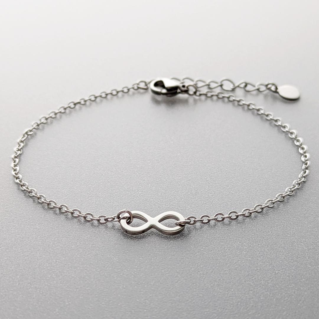 インフィニティチャームがついた、あずきチェーンのブレスレットです。