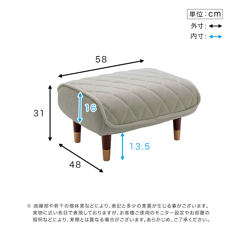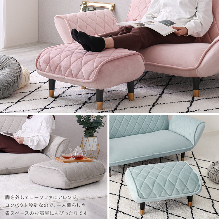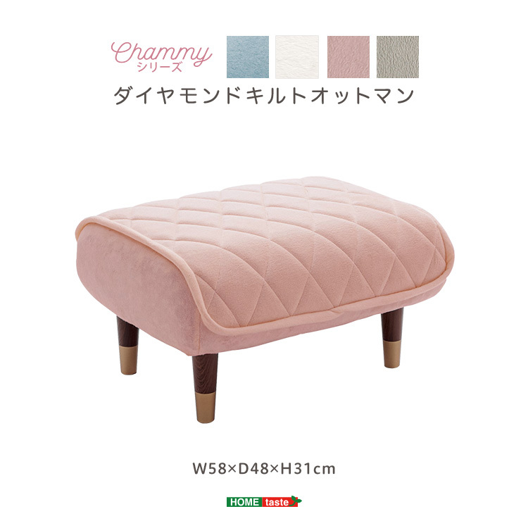 大人かわいい ダイヤモンドキルトオットマン単品  Chammy -チャミー- ブルー&ブラック
