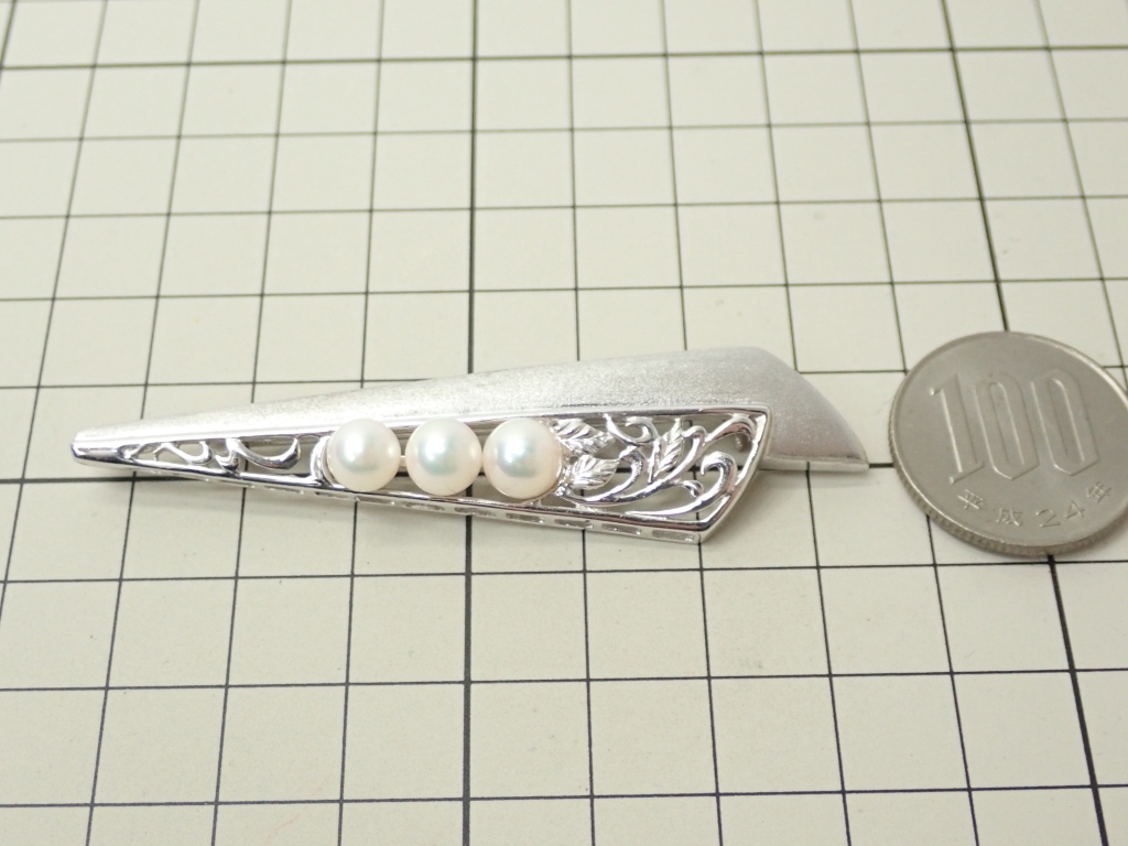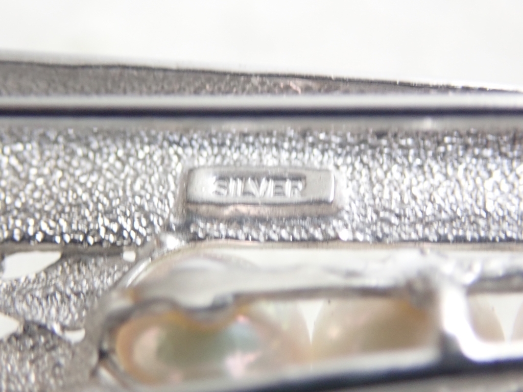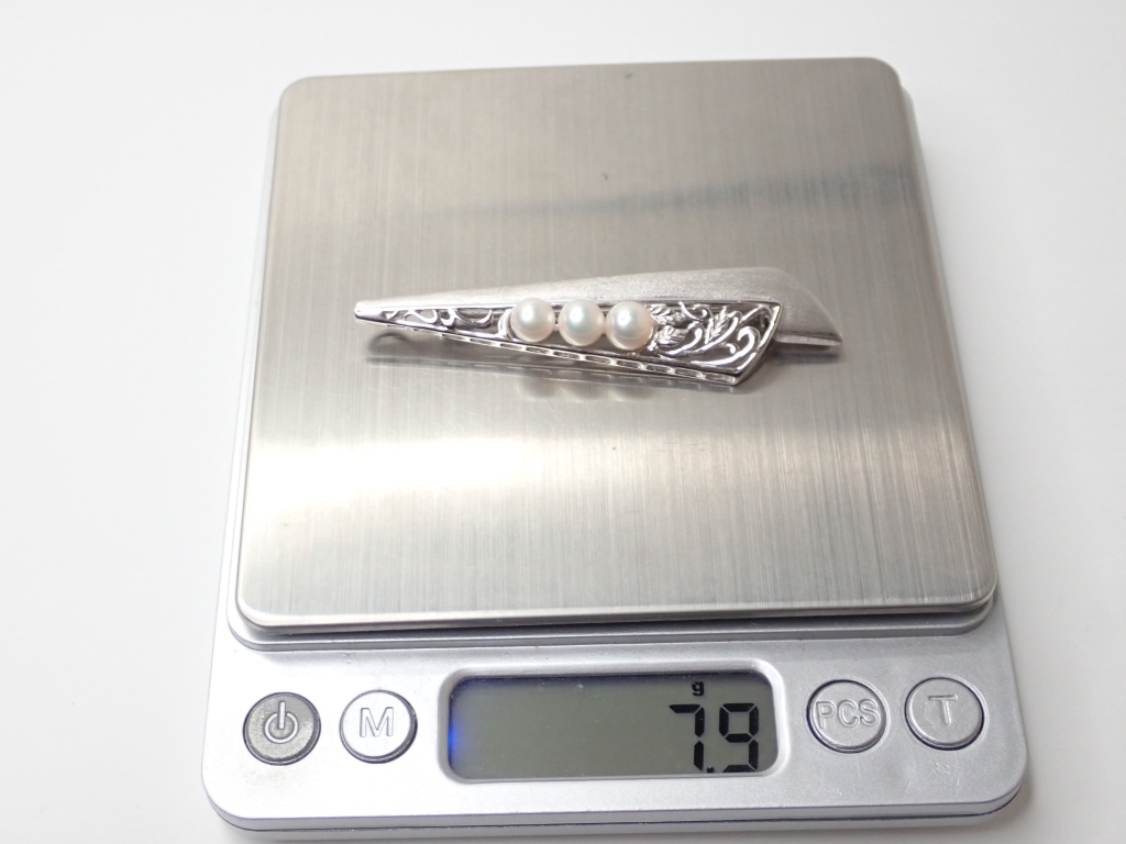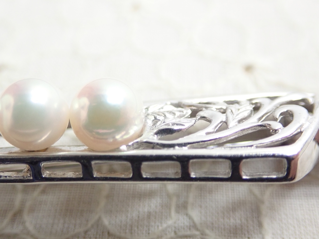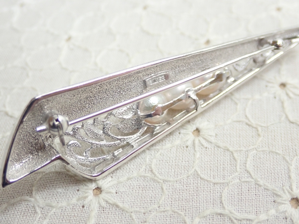L557 シルバー パール デザインブローチ 真珠飾り 6-7mm Silver ヴィンテージ アクセサリー Vintage Perl brooch