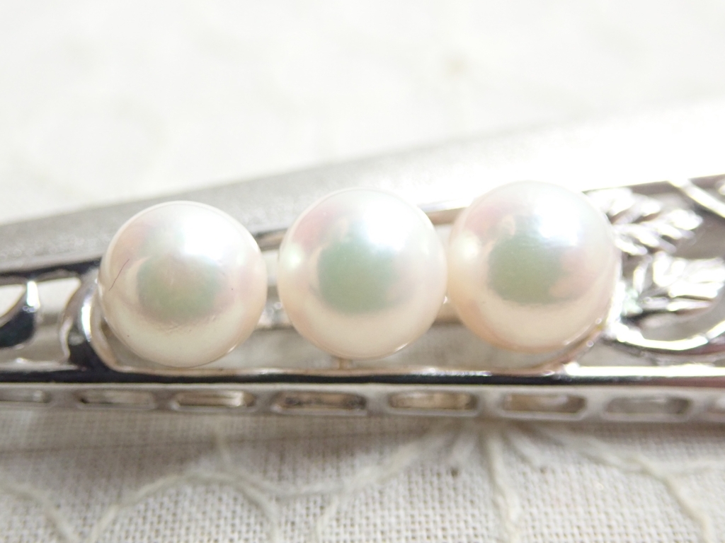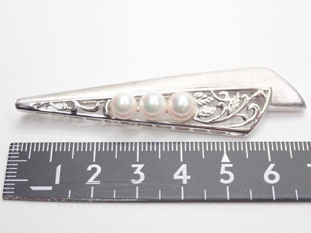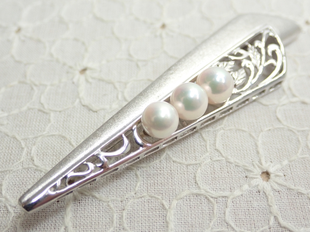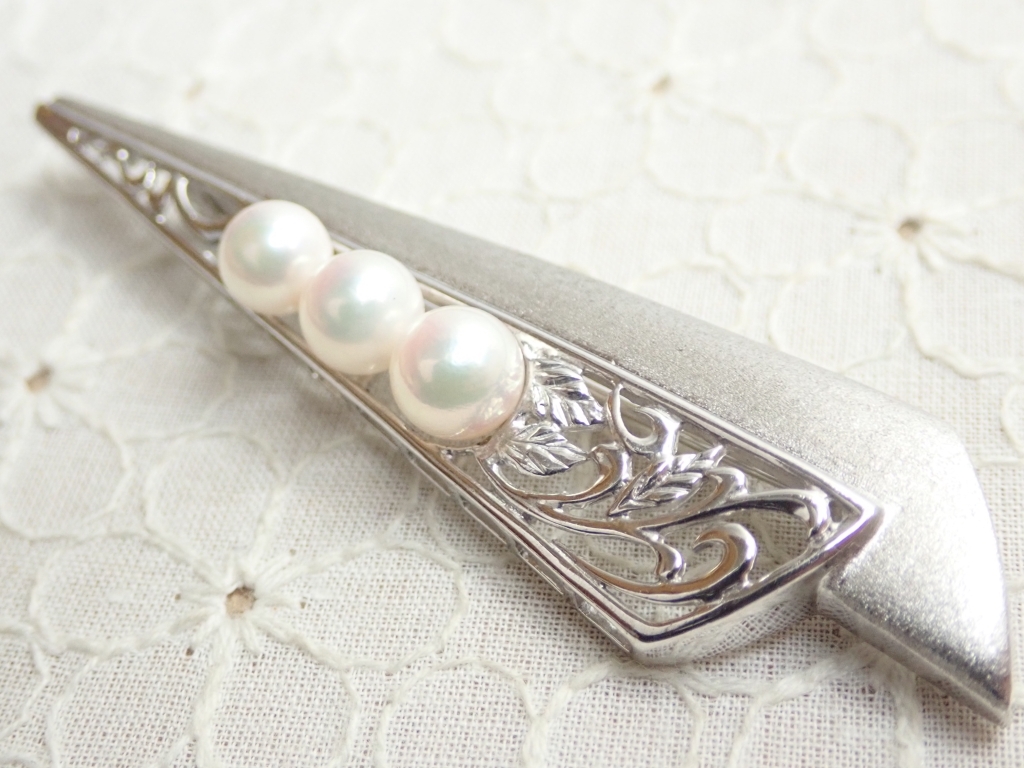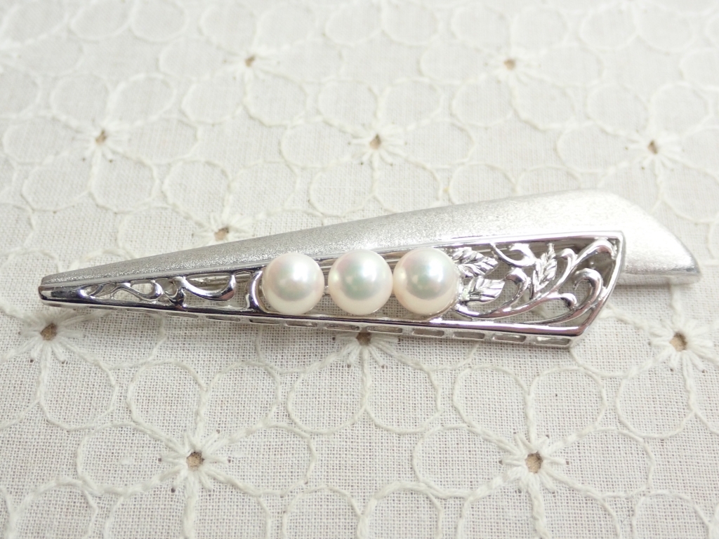 L557 シルバー パール デザインブローチ 真珠飾り 6-7mm Silver ヴィンテージ アクセサリー Vintage Perl brooch