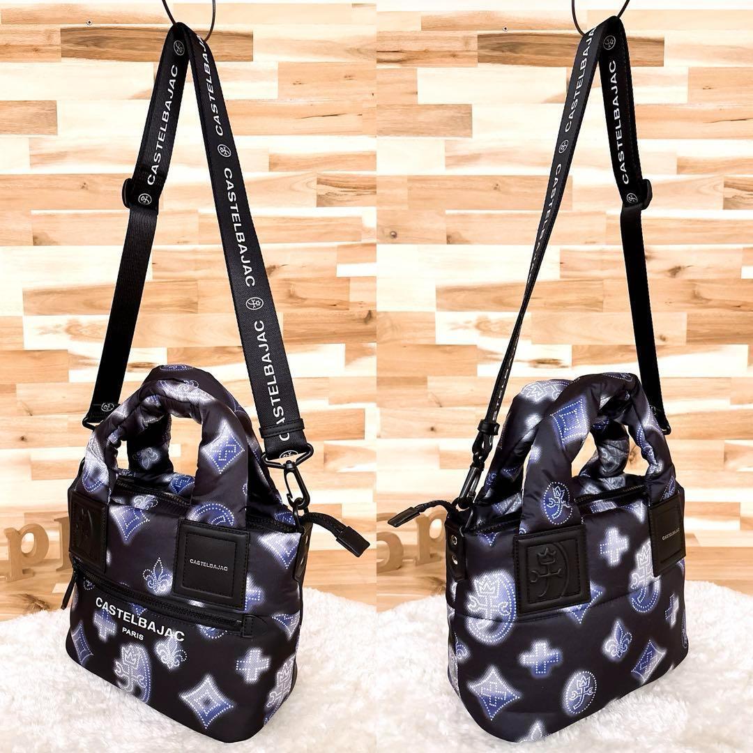 * Poteaux / 2way ミニ トートバッグ *光を浴びたようなパンチング「モノグラム」プリントが特徴のオシャレな逸品。ずっと触っていたい柔らかい肌触りの、もこもことしたルックスながら持ち重りしない軽量仕様。レザーパッチや浮き出た家紋のアクセントがエレガントさ、高級感を演出。ショルダーベルト付きでトラベルから普段使いにまで幅広くお使いいただけるCASTELBAJACのショルダーバッグです。既に完売、生産も終了している廃番モデル。オークションやフリマでも入手困難となっているお品です。