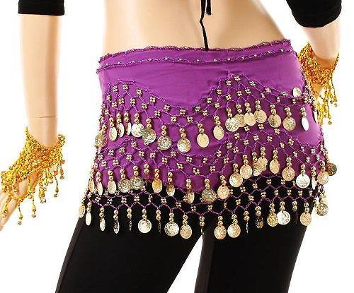 「bz7-a2」 コインヒップスカーフ ベリーダンス 衣装 レッスン用 パープル
