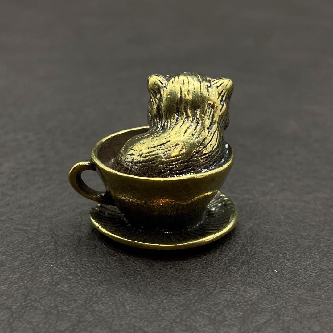 【商品説明】真鍮 置き物 コーヒーカップ 猫