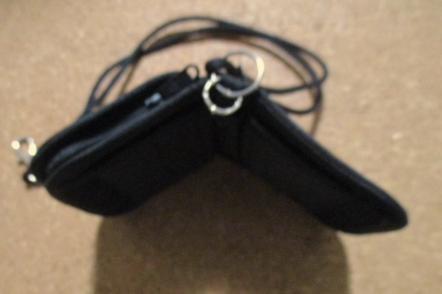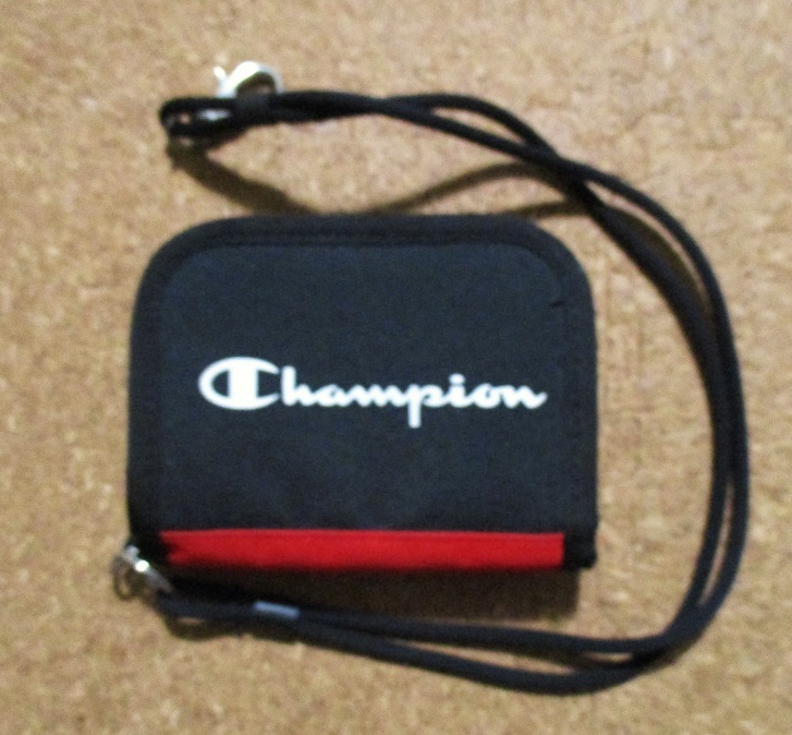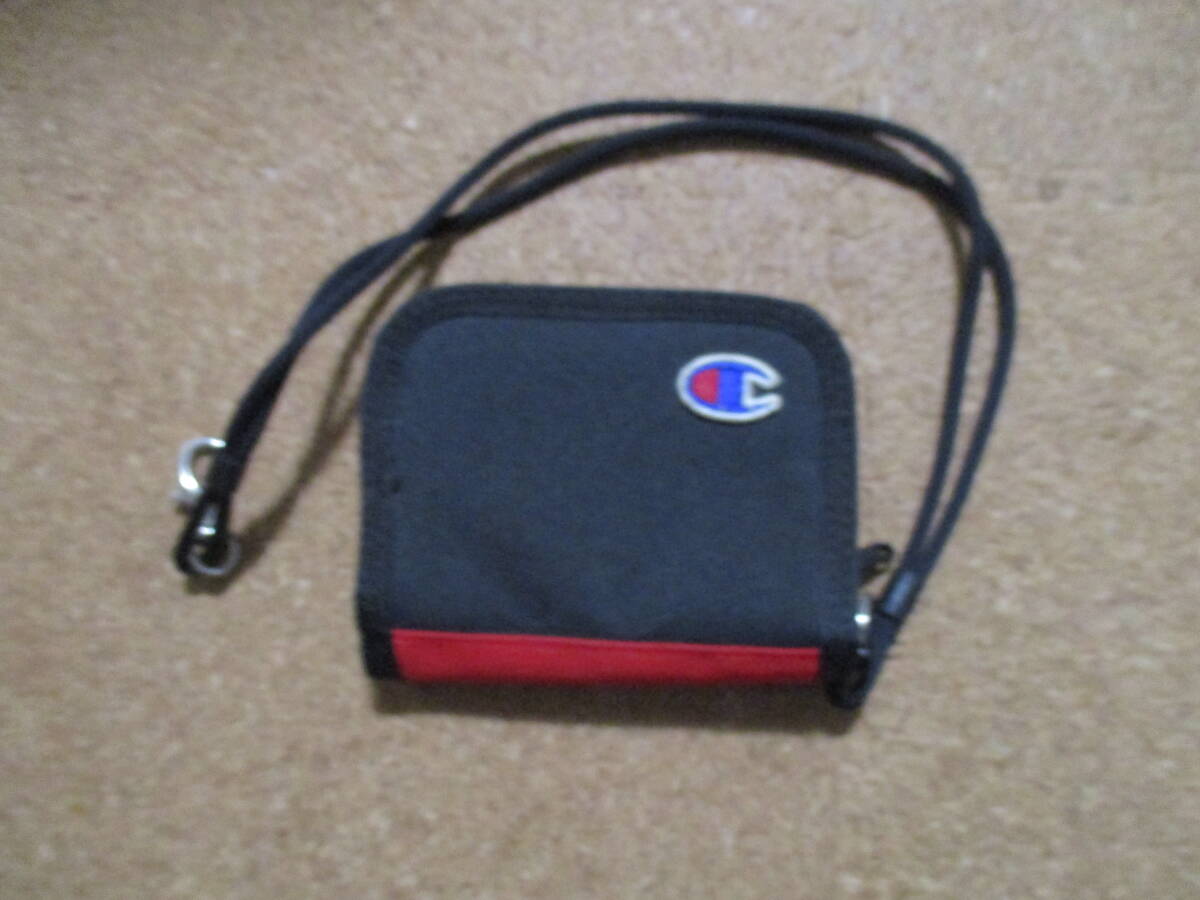 中古品 チャンピオン 折財布 Champion 財布 ストラップ付 黒色 美品 マジックテープ