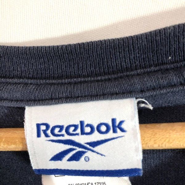 ■ USA製 Vネック Reebok Sports リーボック 刺繍ロゴ入り 半袖 Tシャツ 古着 アメカジ スポーツ フィットネス ネイビー サイズXL■
