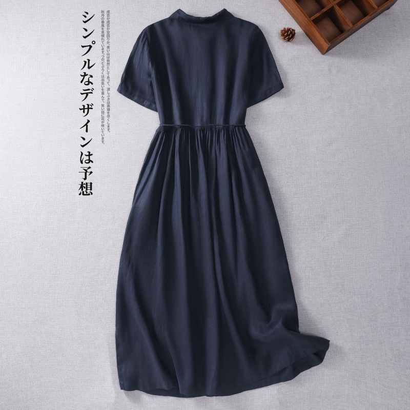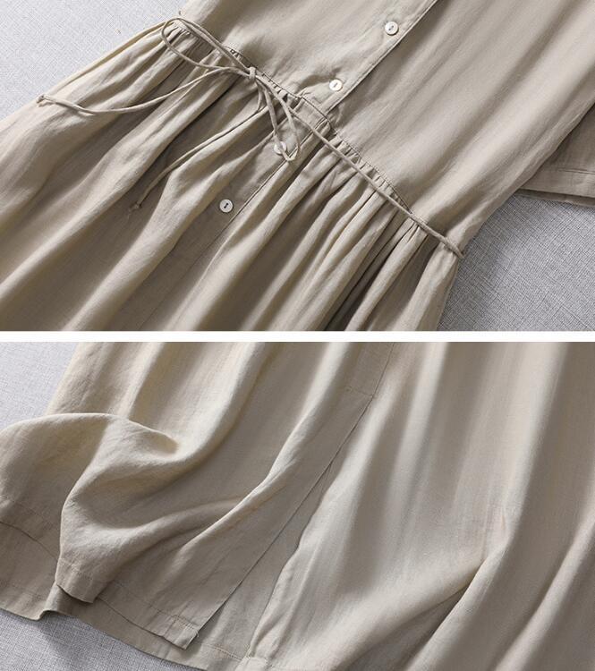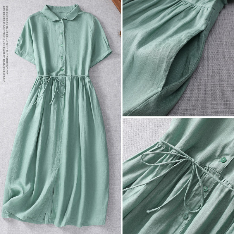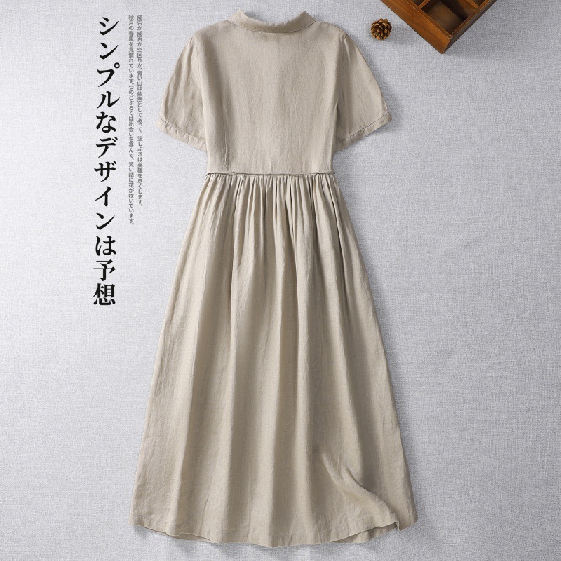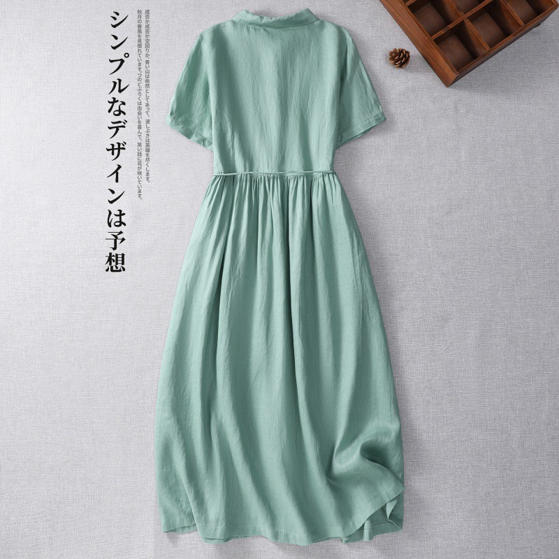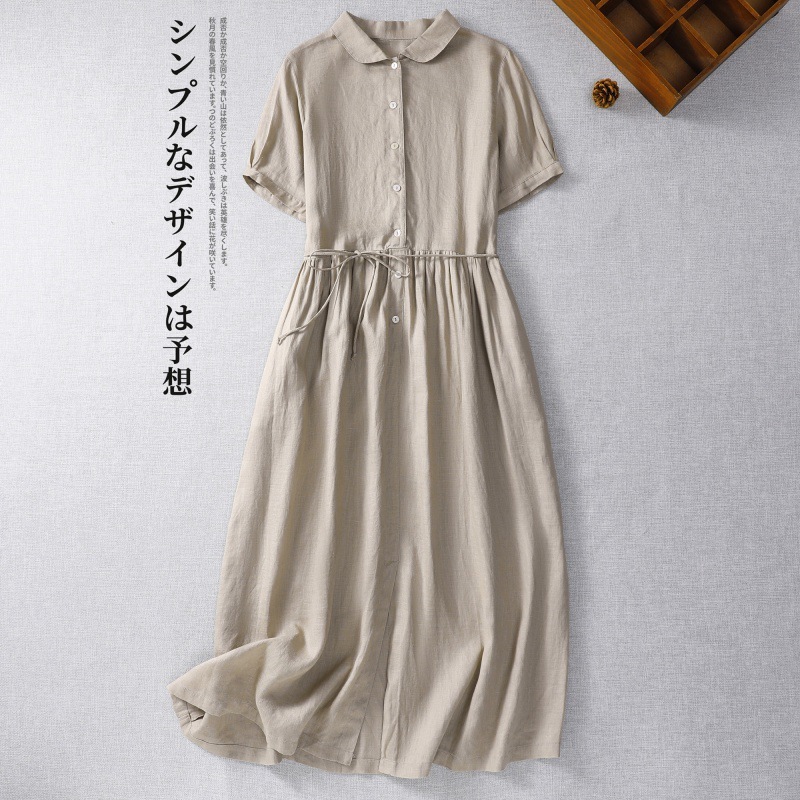 新入荷 ロングワンピース 綿麻ワンピース シャツワンピース ワンピース レディース 夏 リネン 半袖 ゆったり ロング丈 麻色お色選択可