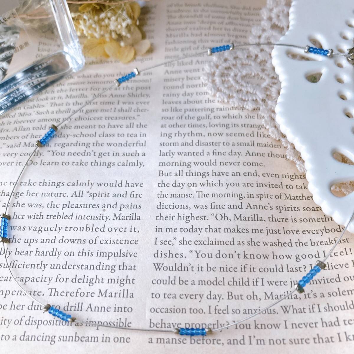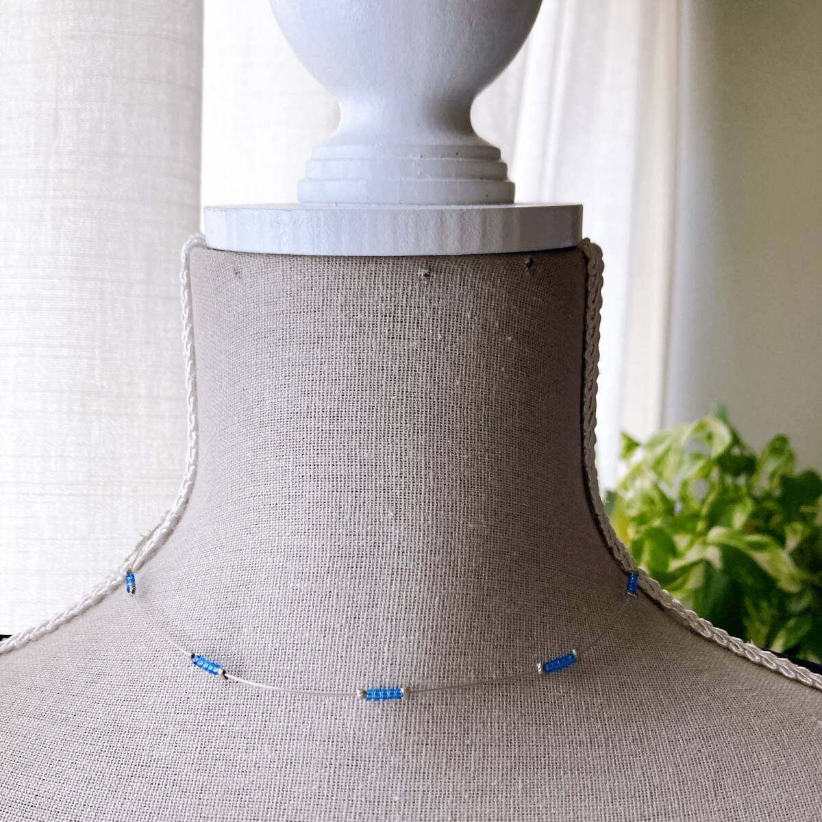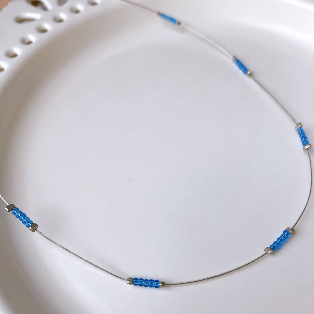 ネックレス ショート チョーカー ワイヤーネックレス ブルービーズ ビンテージ 軽量☆Vintage jewelry accessories R0357