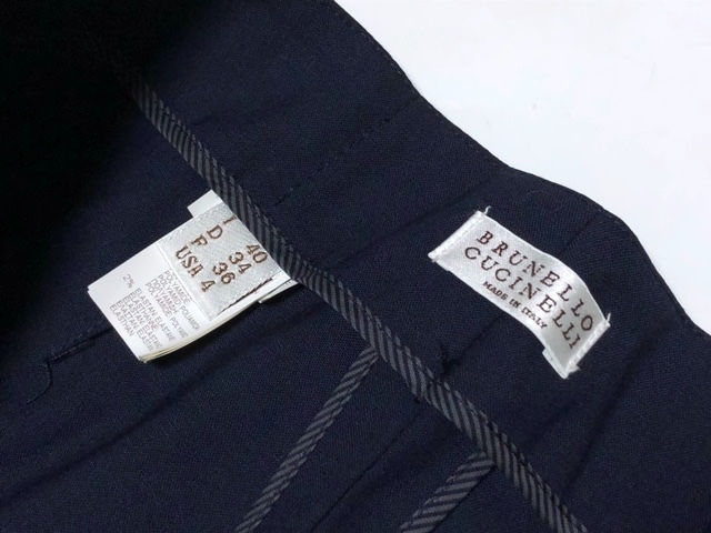 二点落札で送料無料! B048 伊製【美品】ブルネロクチネリ テーパードパンツ クロップドパンツ スラックス 40 M-L ネイビー レディース 紺