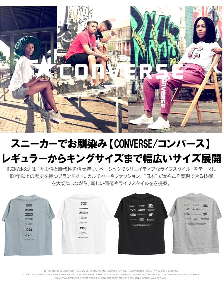 | 商品名 | 【新品】 2L ホワイト コンバース CONVERSE 半袖 Tシャツ メンズ 大きいサイズ フェス風 バック プリント クルーネック カットソー |