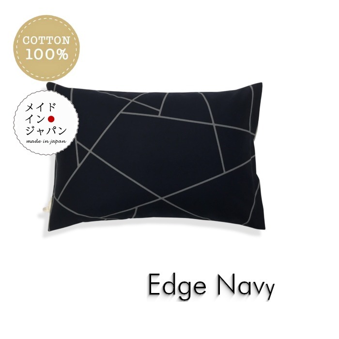 Sサイズ枕カバー エッジ ネイビー 紺 ピローケース 35×50cm 綿100%