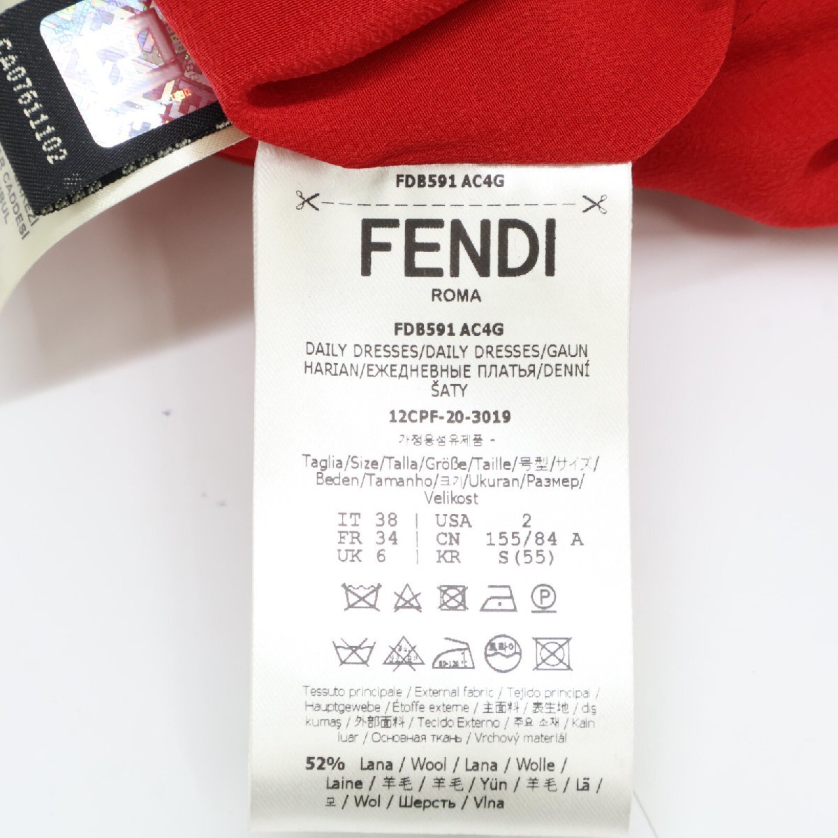 美品/国内正規/20年製 FENDI フェンディ FDB591AC4G ベルスリーブ ドレス/ ワンピース 38 レッド レディース