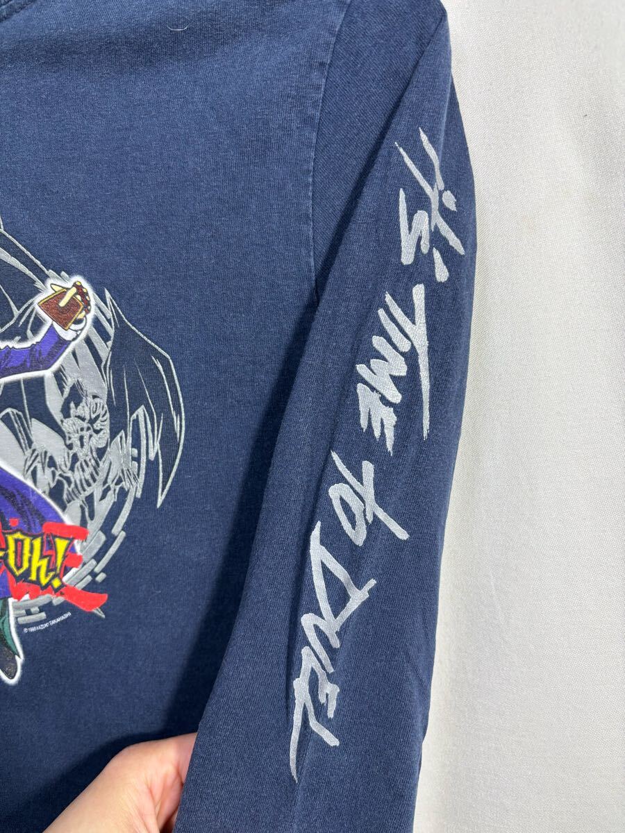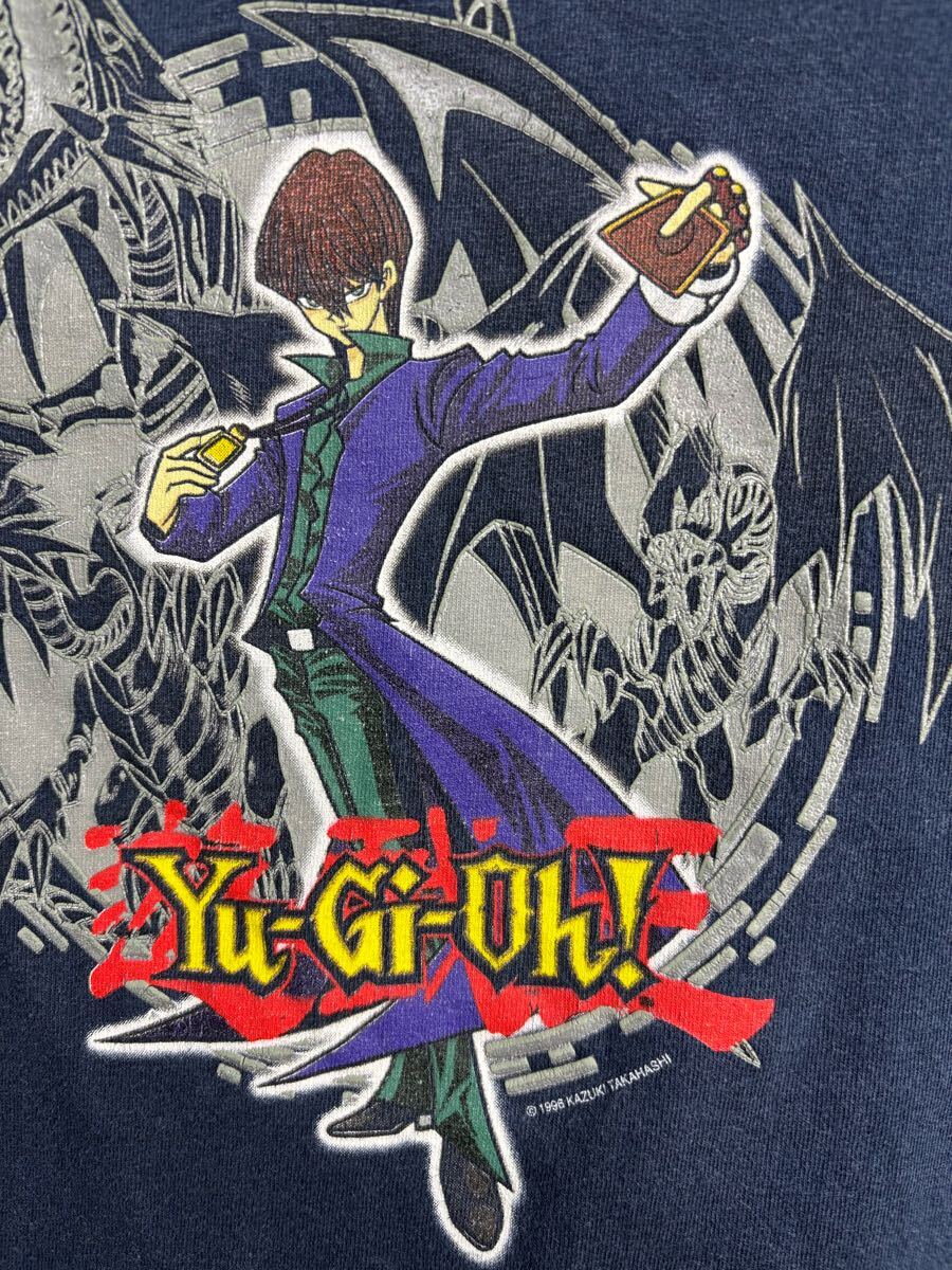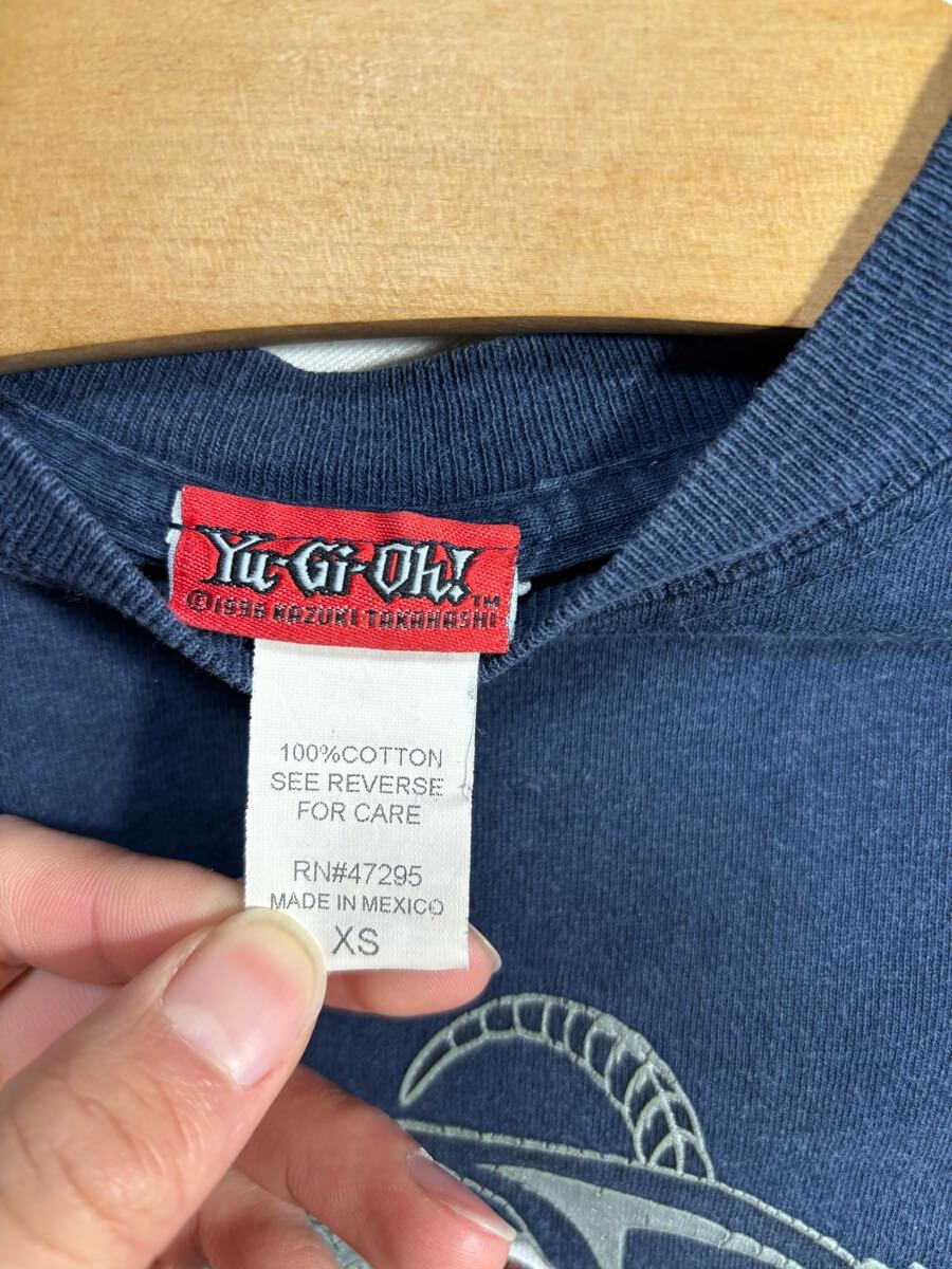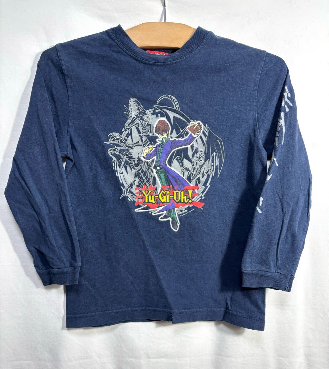 ■ 子供用 90s ビンテージ Yu-Gi-Oh! 遊戯王 プリント 長袖 Tシャツ古着 ロンT 袖プリ サイズXS ネイビー アニメ 海馬瀬人 青眼の白龍 ■