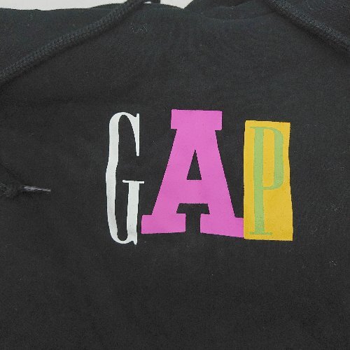 ◇ ⊇ GAP ギャップ バックプリント 長袖 パーカー サイズXS ブラック レディース E