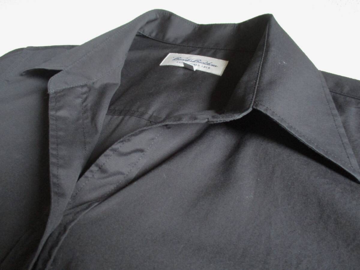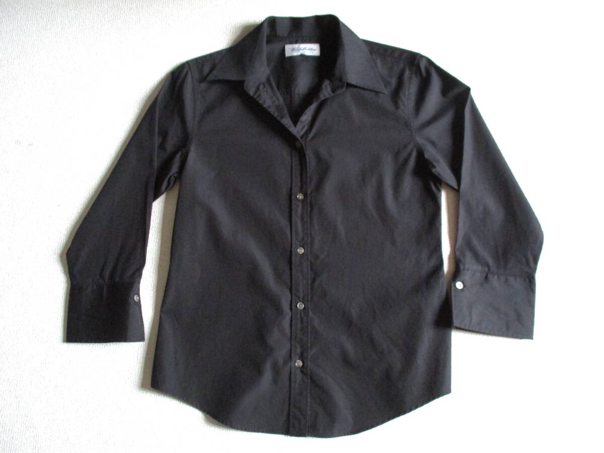 オープンカラー★ レディースL ブルックスブラザーズ★ 8分袖開襟ドレスシャツ★ 黒 ブラック
