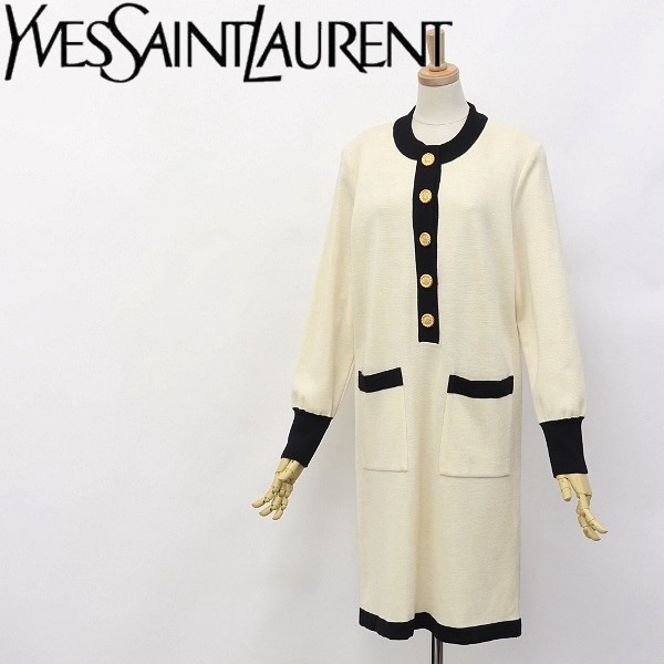 | ◆Yves Saint Laurent/イヴサンローラン 金釦 ウール ニット 長袖 ワンピース アイボリー M | |