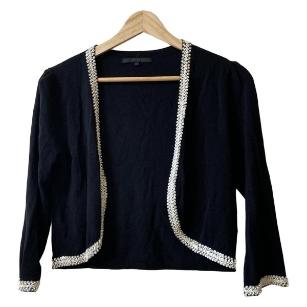 アナイ ANAYI カーディガン サイズ38 M - 黒×アイボリー レディース 長袖/ビーズ/スパンコール トップス