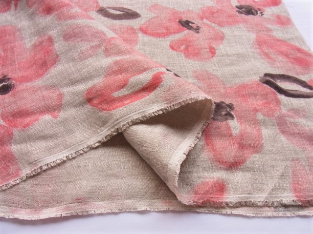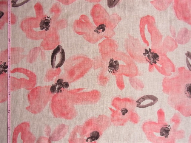 麻100%ダブルガーゼ【絵画風花柄(ピンク)】 [NE1321-A]