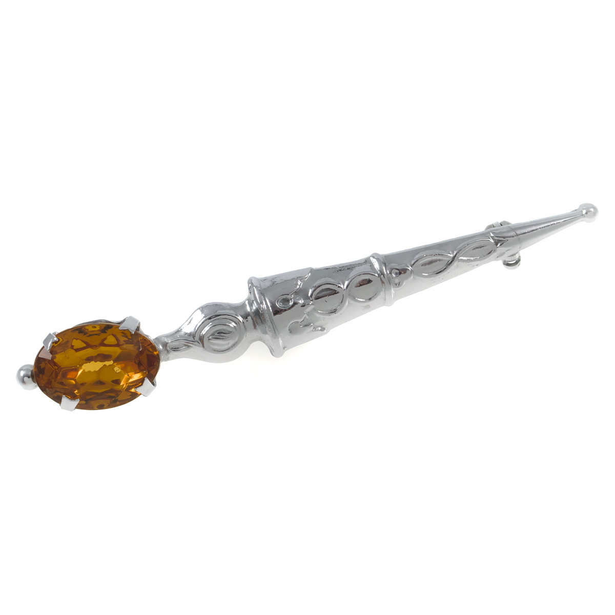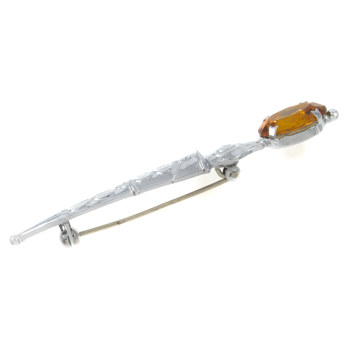 UK3417◆【MIZPAH】◆ 剣 ソードモチーフ 山吹色ラインストーン ◆ ヴィンテージブローチ ◆ イギリス ケルト 英国 ◆