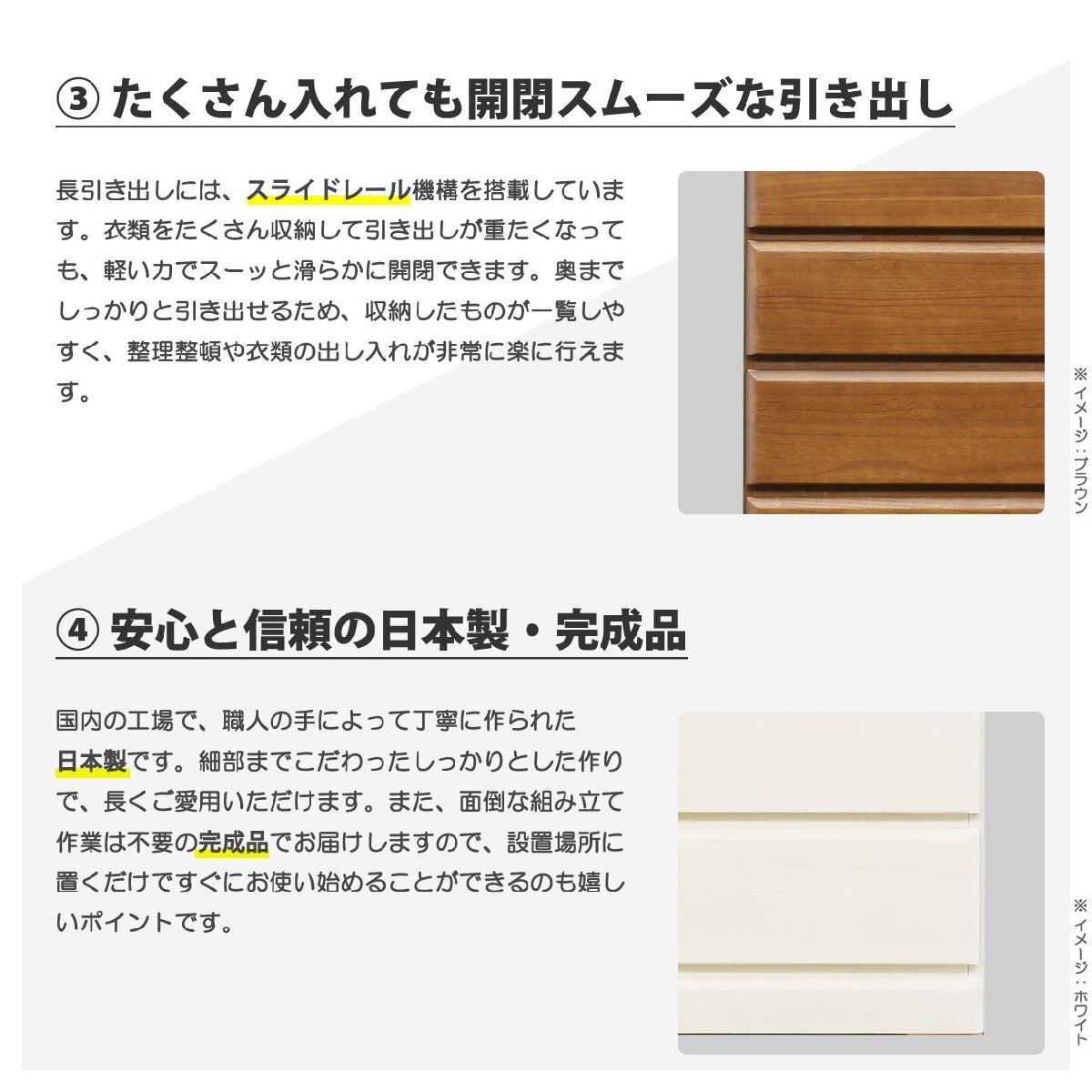 説明マーク●国産 ●完成品 ●無垢 ●MDF