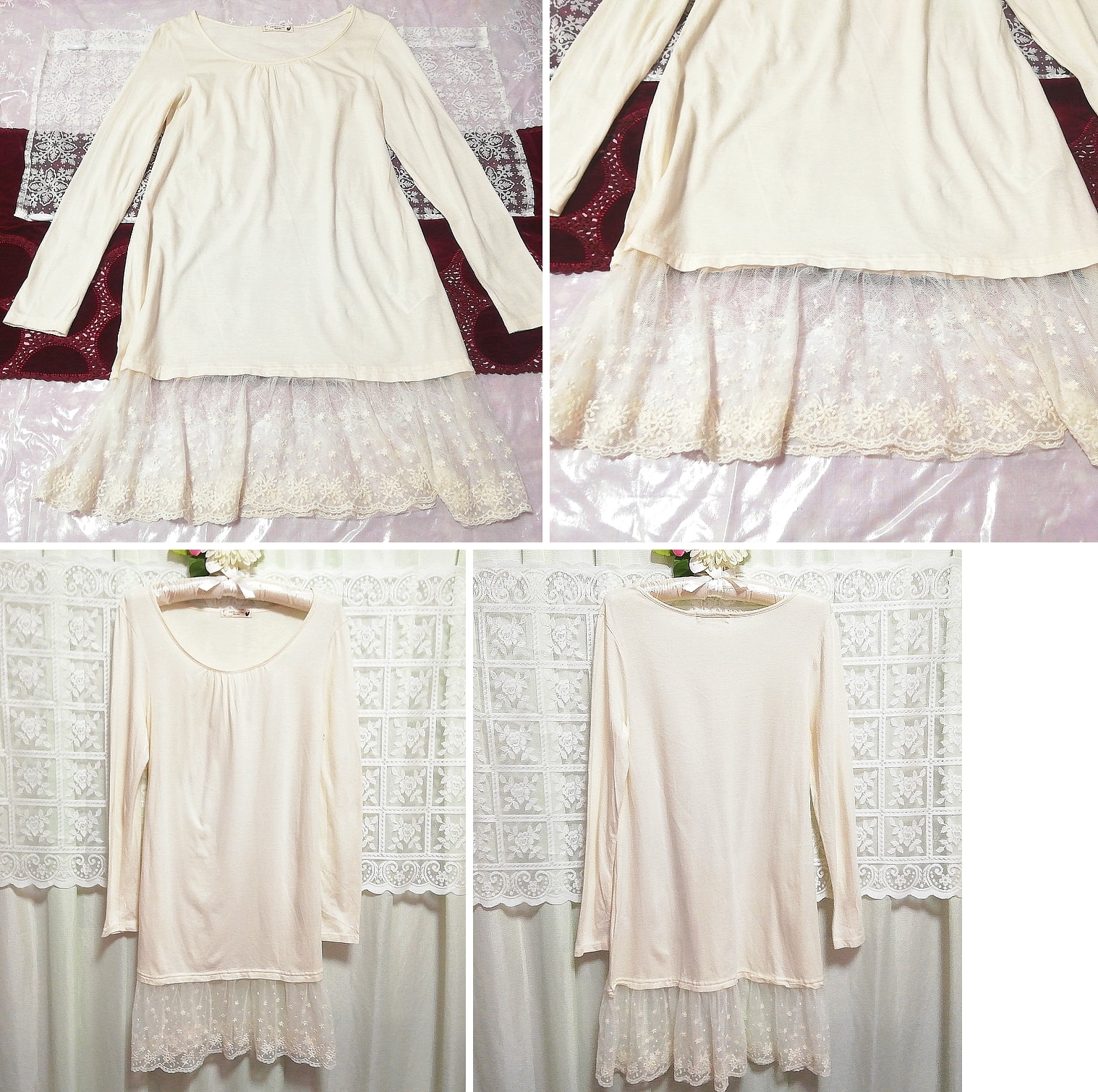 フローラルホワイト白レースミニスカートチュニックネグリジェ Floral white lace mini skirt tunic negligee