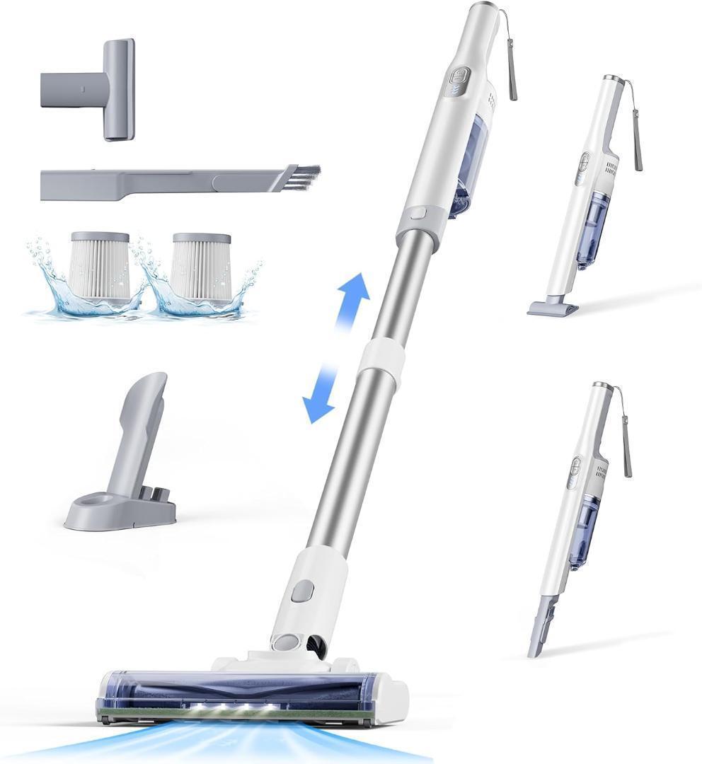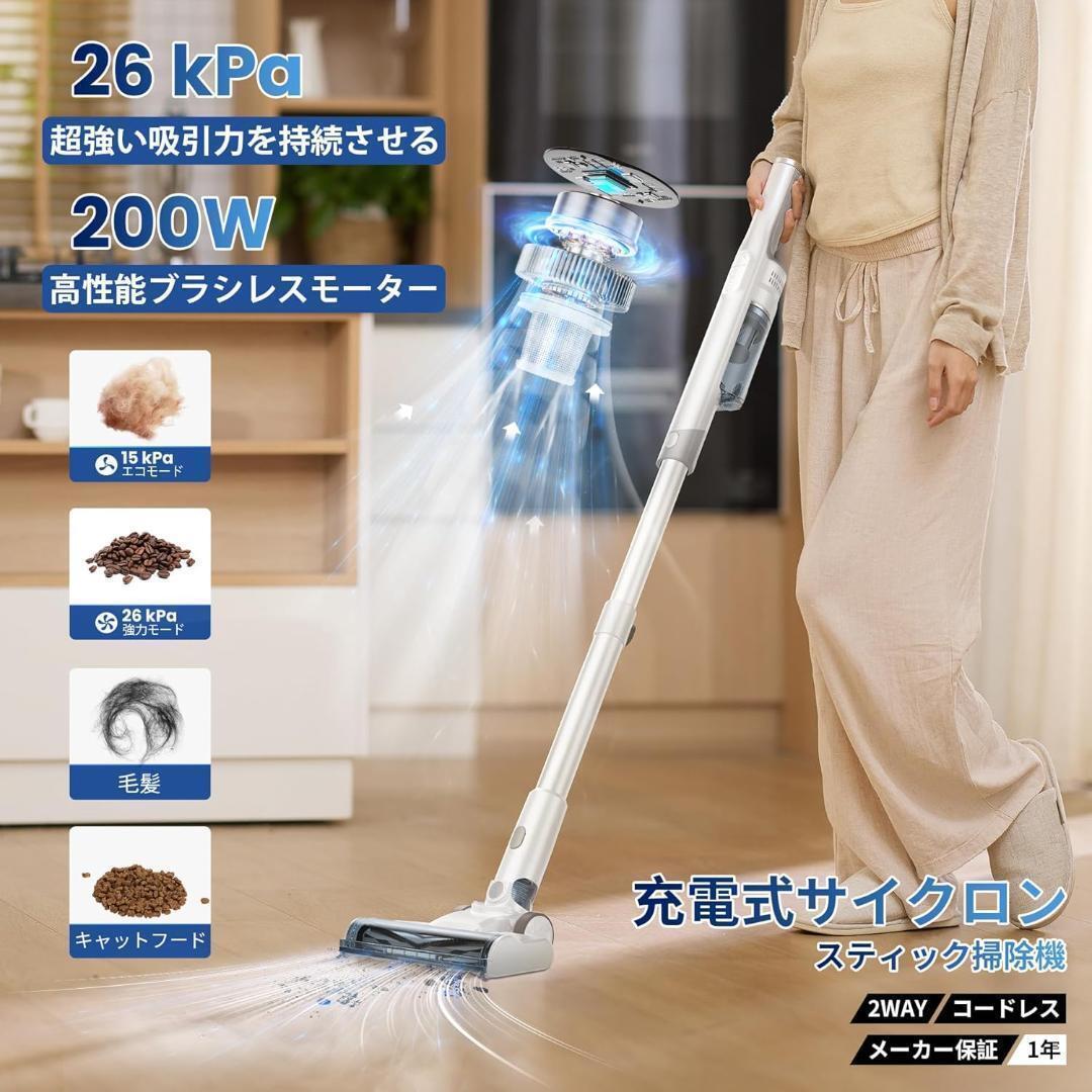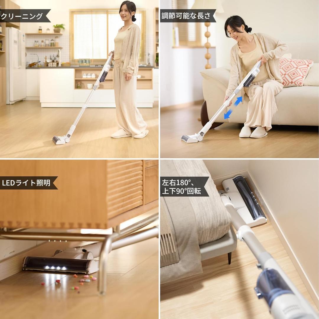 【大容量バッテリー&24段階伸縮パイプ&ハンドストラップ付き】4*2200mAhリチウム充電式バッテリーを搭載し、わずか4-5時間で急速充電が完了です。エコモードで最大30分間連続使用できます。24段階伸縮パイプは身長に合わせて自由に長さを調節でき、家の隅々まで届き、すべてのホコリを取り除きます。親切な日本語取扱説明書付き。