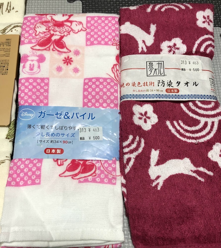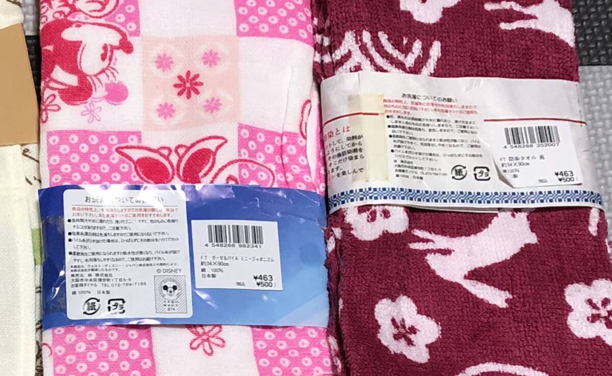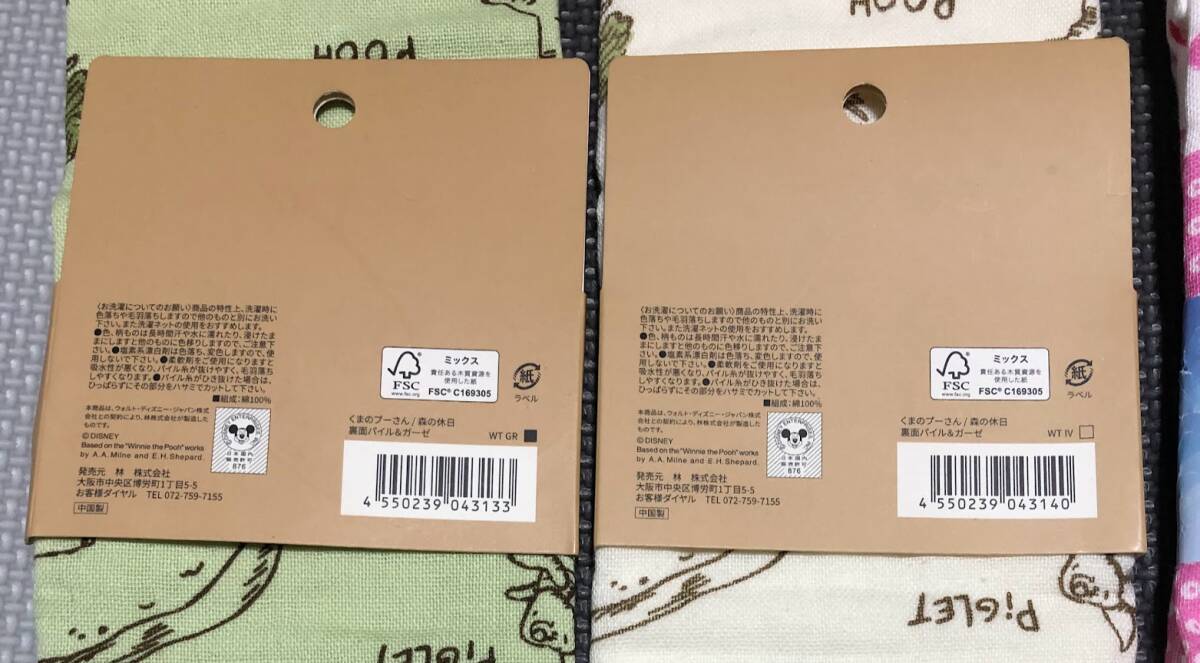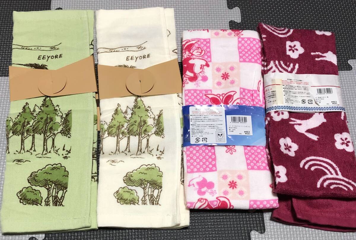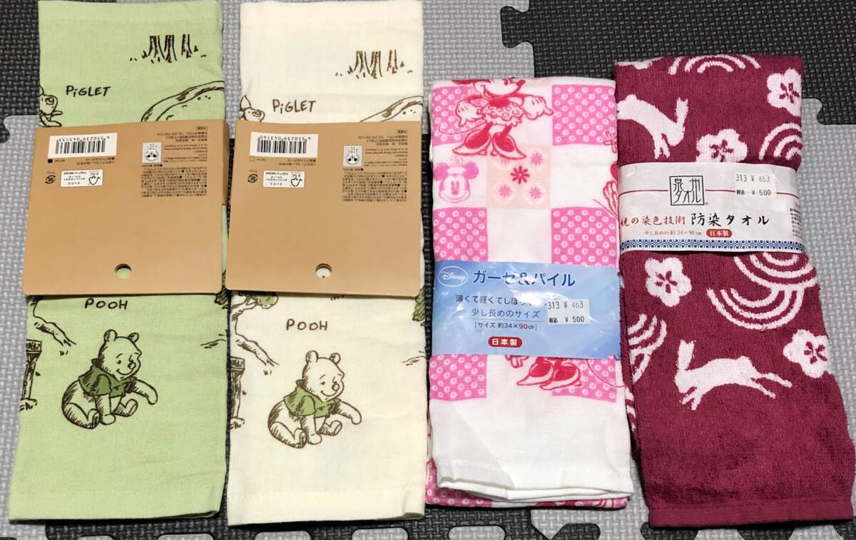 計4枚 未使用 ★ くまのプーさん 森の休日 裏面パイル ガーゼ / Disney ディズニー ミニーちゃん ミニージャポニズム / 防染タオル