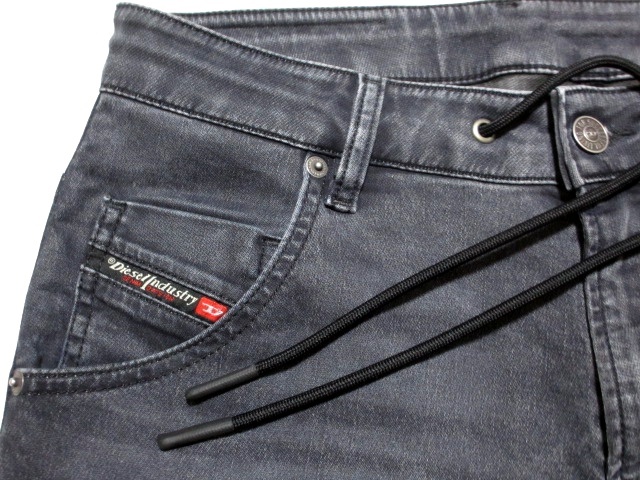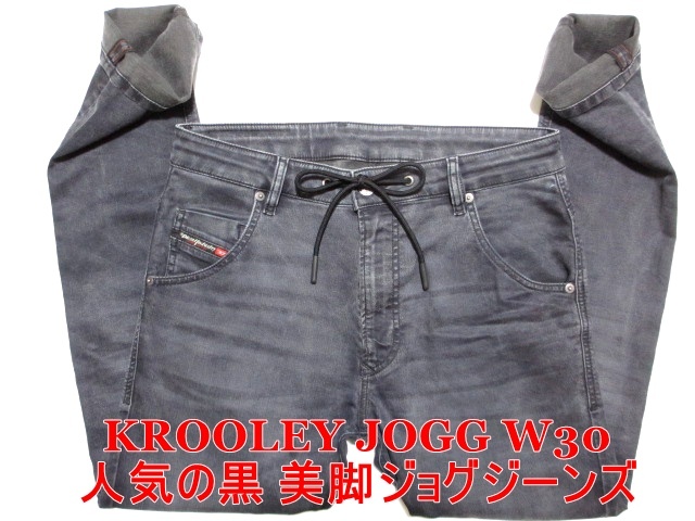 即決 人気のクルーリー新型NEWジョグジーンズ DIESEL KROOLEY JOGG ディーゼル W30実83 ストレッチ 大人気の黒ブラックデニム メンズ