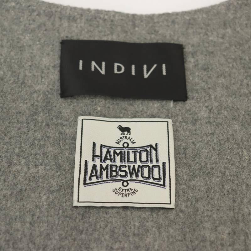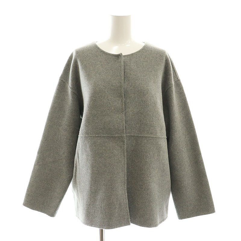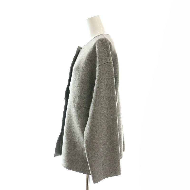 インディヴィ INDIVI ウールリバーノーカラーコート ショート丈 38 グレー /AT ■OS レディース
