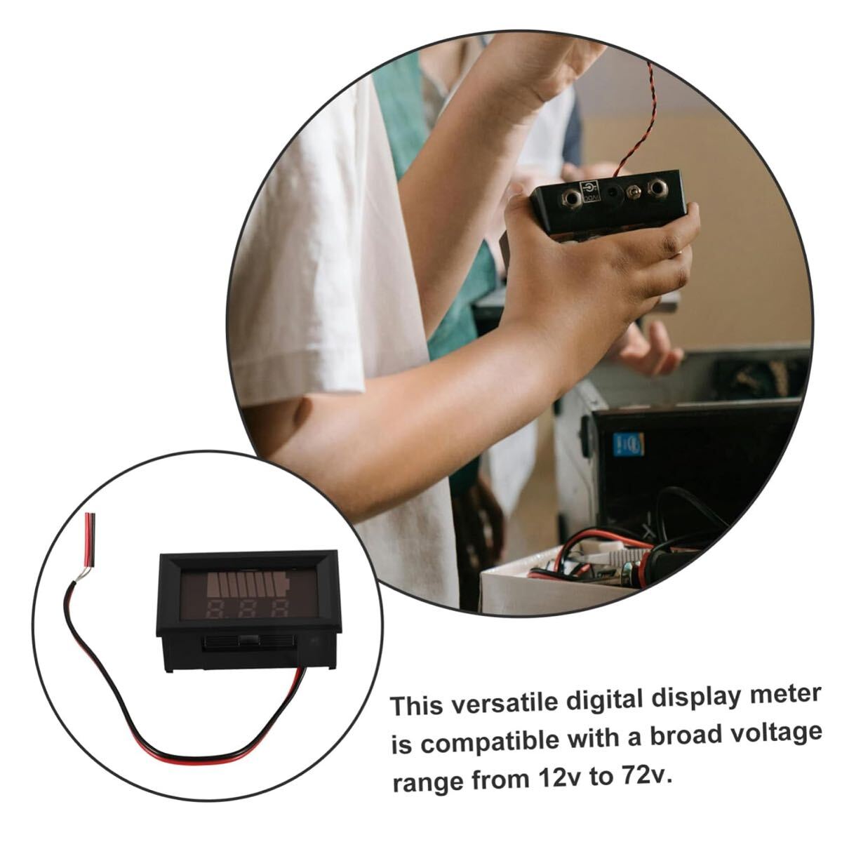 この多用途デジタル表示メーターは、12vから72vまでの広い電圧範囲をサポートしており、さまざまなバッテリー駆動に最適で、さまざまなバッテリータイプとの互換性を確保し、バッテリー用の電圧測定ツールです。