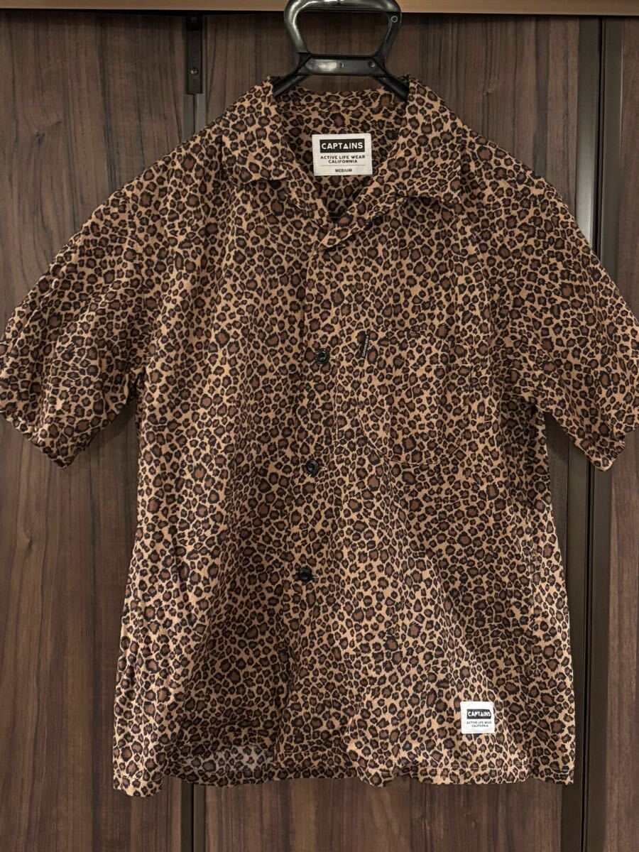 CAPTAINS HELM キャプテンズヘルムのレオパード、ヒョウ柄のオープンカラー 半袖 シャツです。サイズMで、実寸は肩幅43、袖丈23、身幅50、着丈68cmとなります。ノークレーム・ノーリターンでお願いします。