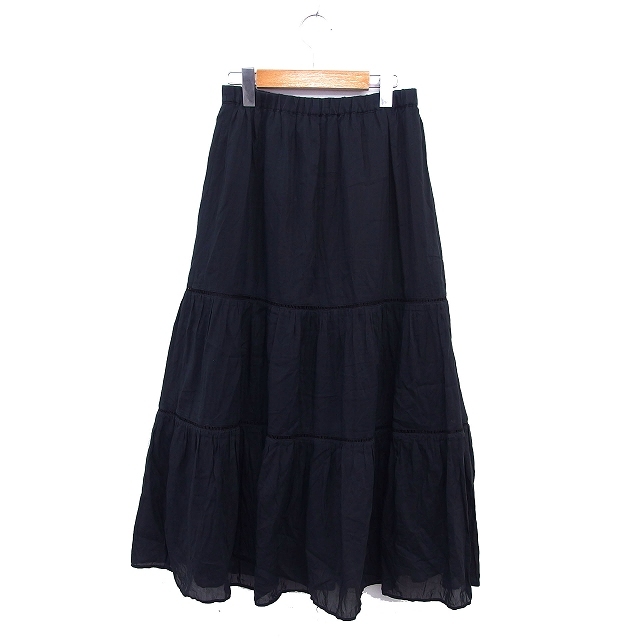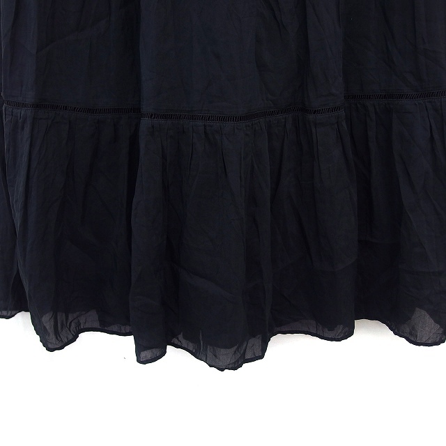 スーナウーナ Sunauna ティアード フレア スカート ロング はしごレース ゆったり マキシ丈 シルク混 36 黒 ブラック /NT7 レディース
