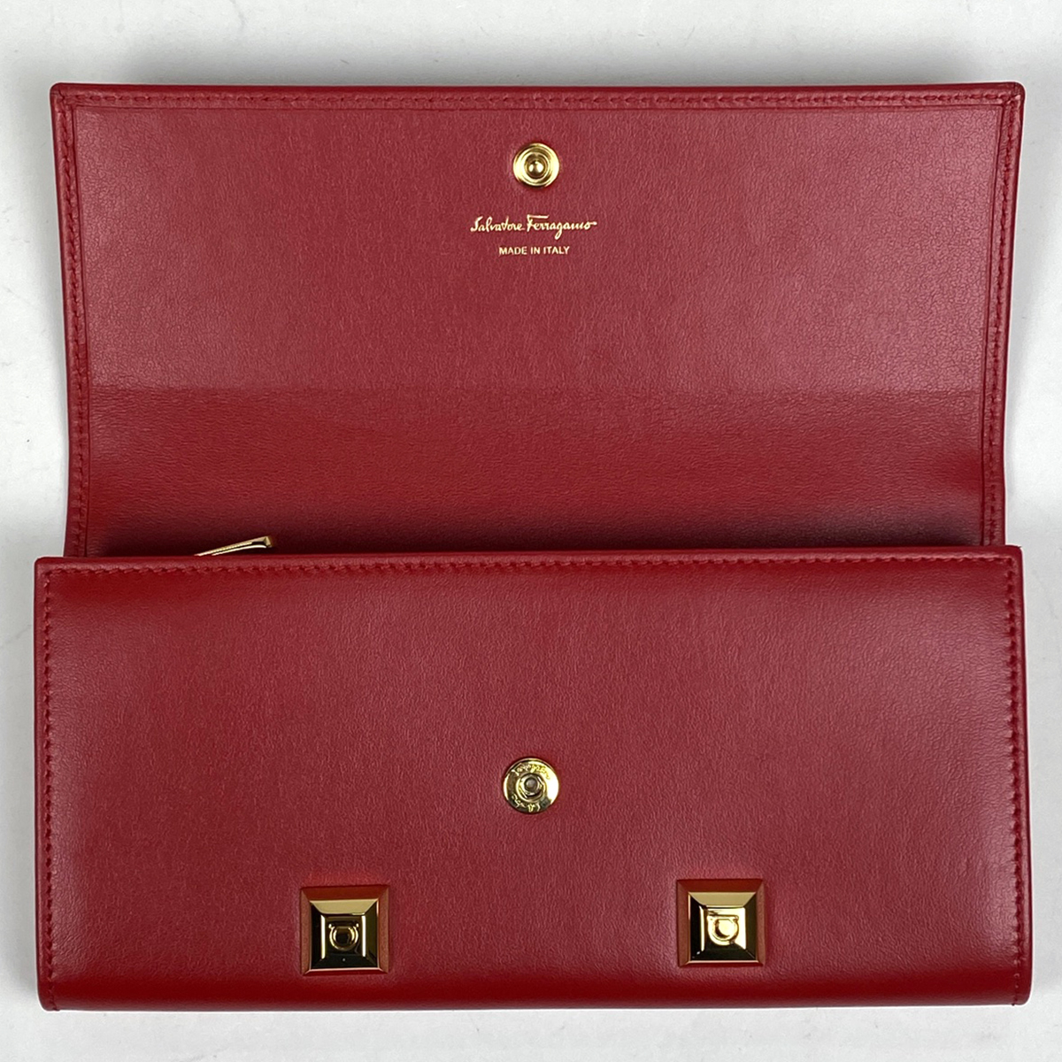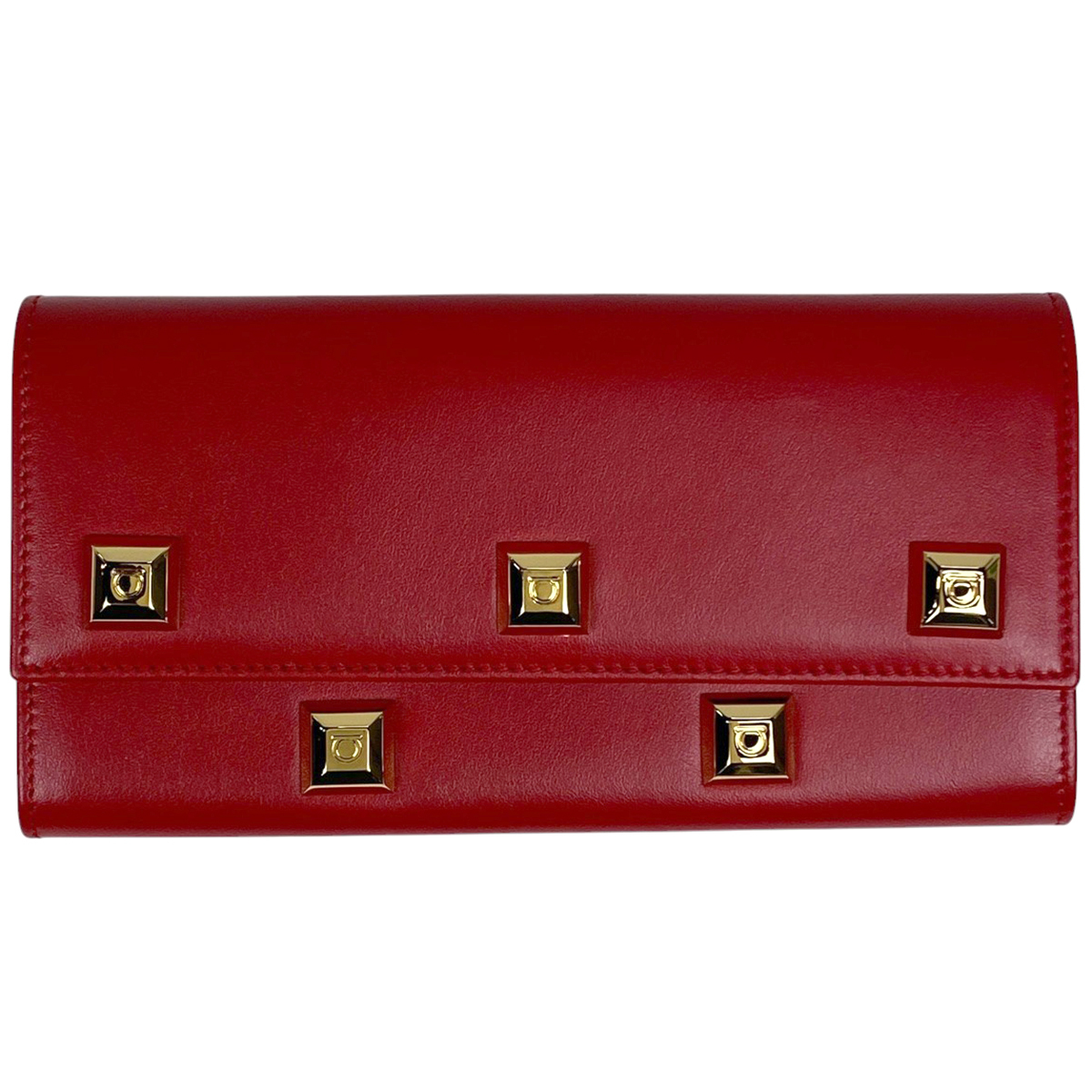 サルヴァトーレフェラガモ Salvatore Ferragamo ガンチーニ スタッズ 二つ折り 長財布 長財布 レザー レッド D502 レディース 【中古】 |