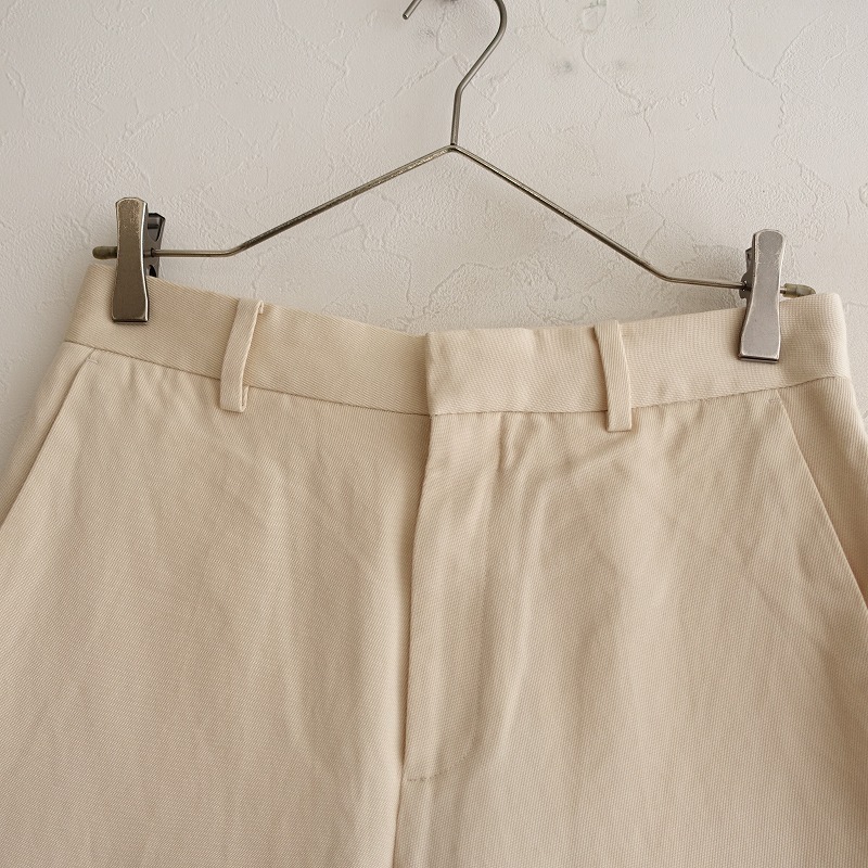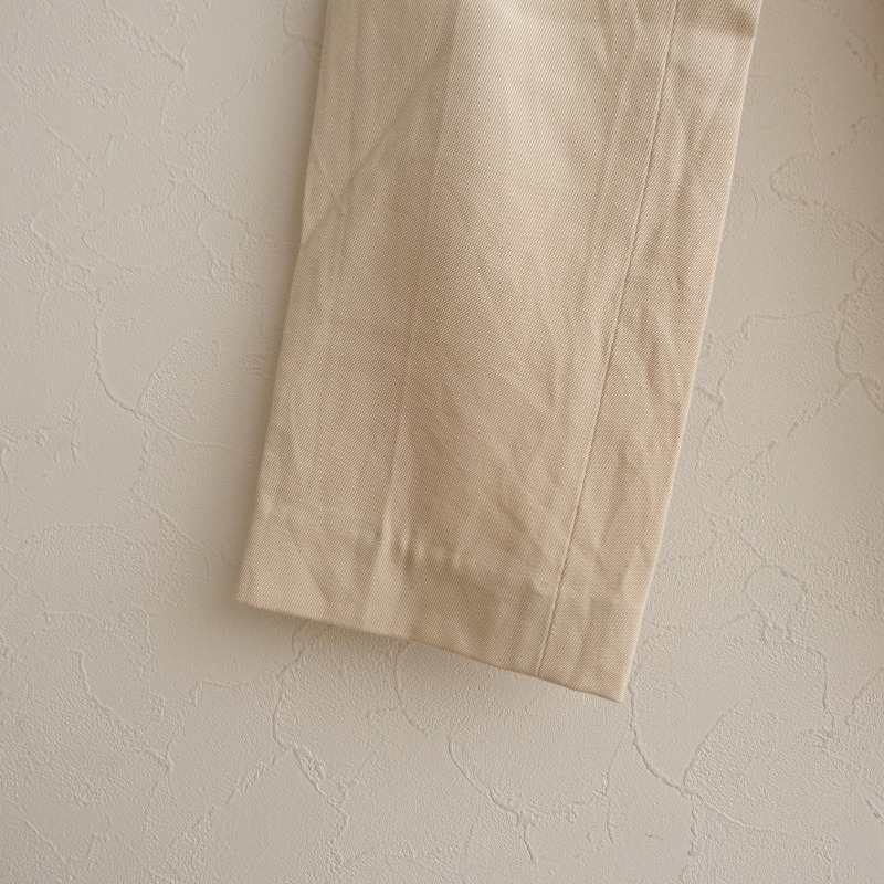 | DRESSTERIORのシルクコットントリコチノパンツです。カラーはライトベージュで、シルクコットン地で仕立てられています。開口部はフックとファスナーで、両腰&両ヒップにポケット付きです。定価(メーカー希望小売価格) 41,800円の商品です。 |
