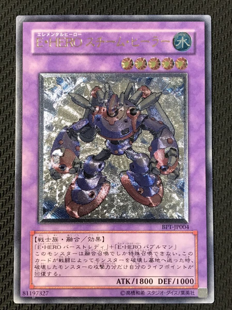 出品物『E・HEROスチーム・ヒーラー(BPT-JP004)アルティメットレア(レリーフ)』です。