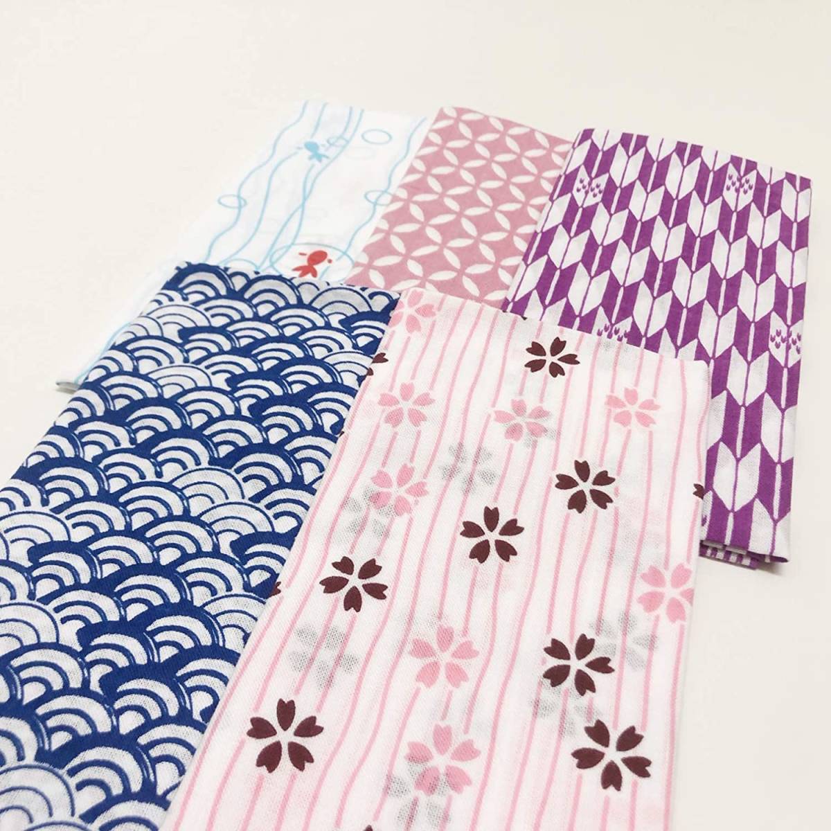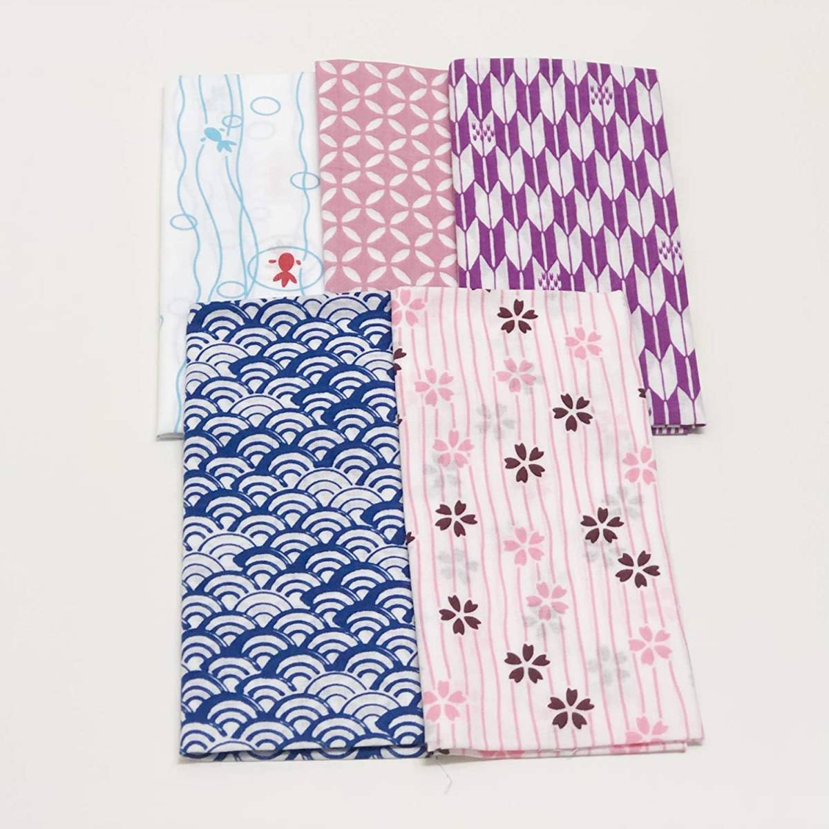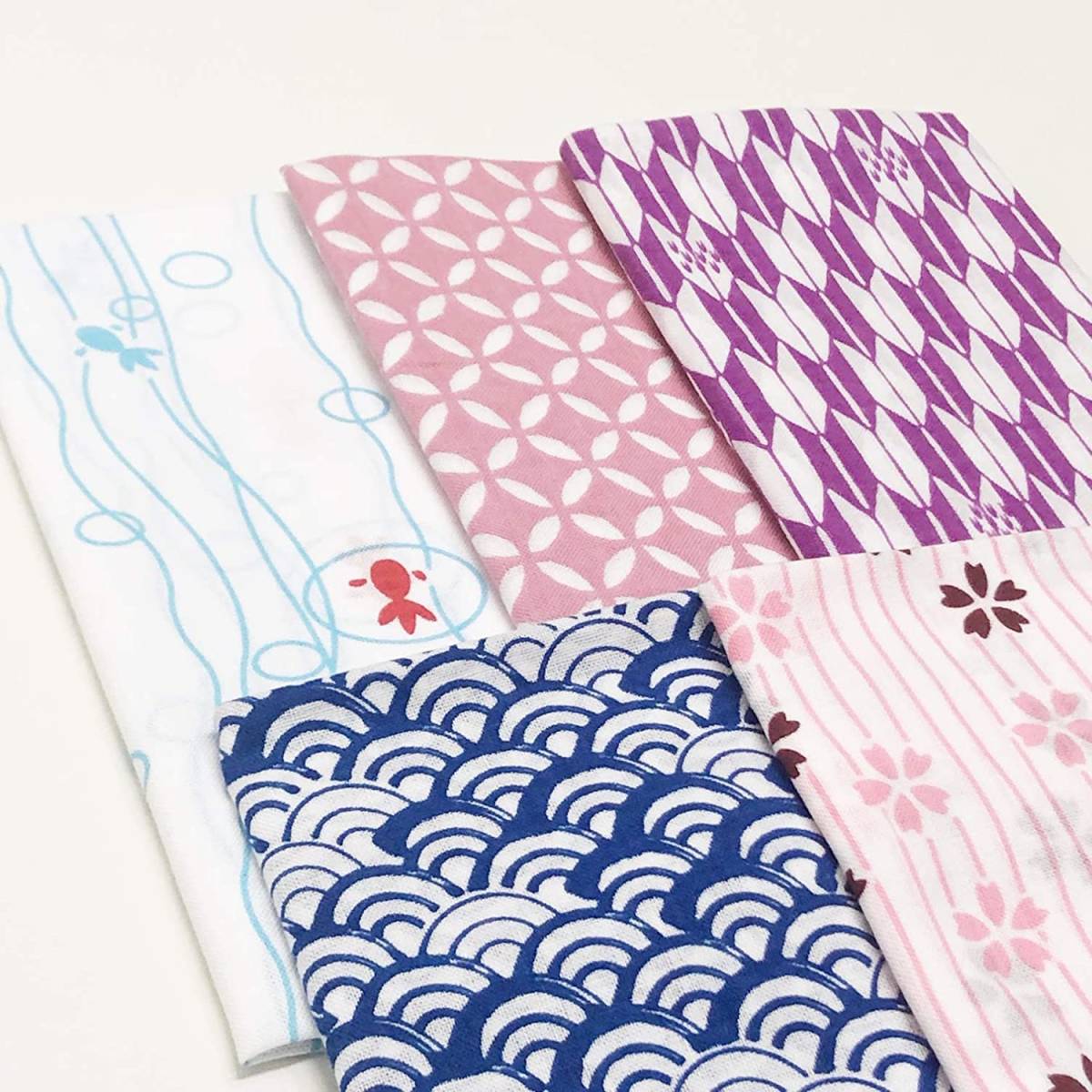 小紋手ぬぐい 手拭 5枚組 青海波 桜 金魚 七宝 矢絣 日本製