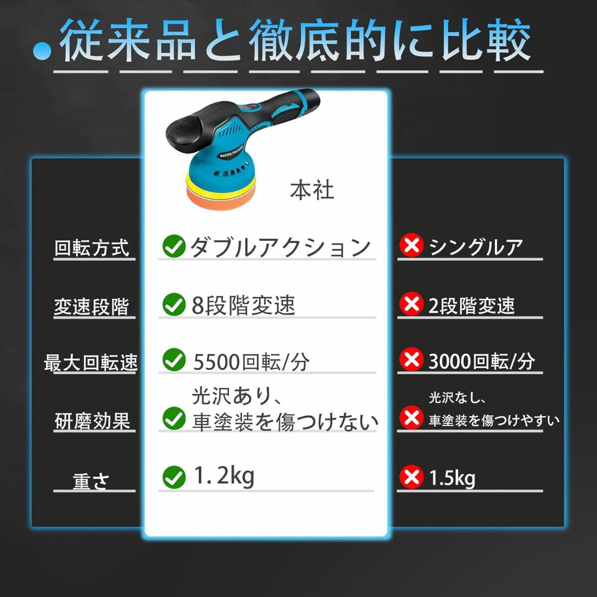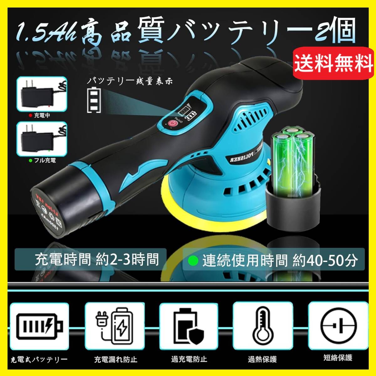 新品未使用 / 即日発送 / ダブルアクション・コードレス電動ポリッシャー / 12V・125mm / 8段変速機能搭載 / 豊富な付属品セット