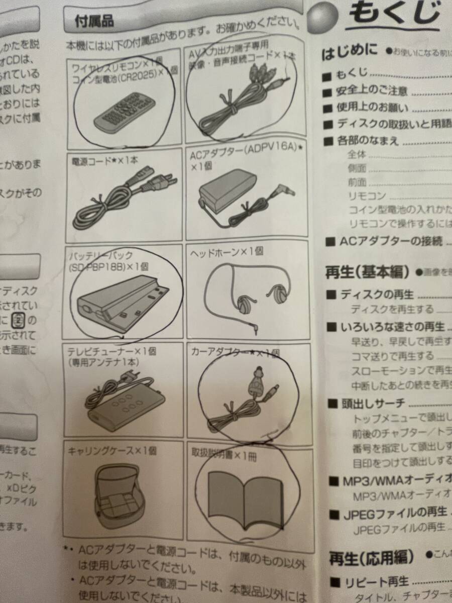 USED・東芝ポータブルDVDプレーヤー付属品、説明書・SD-P1850SJ・4点セット・200円