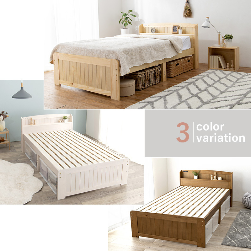 3段階高さ調節ができるコンセント付きの木製ベッドです。