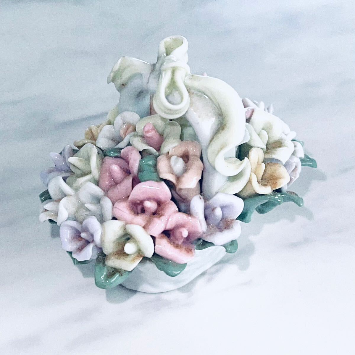 #薔薇彫刻#インテリア雑貨#ブーケ#薔薇陶器#花籠#バスケット#陶器バスケット