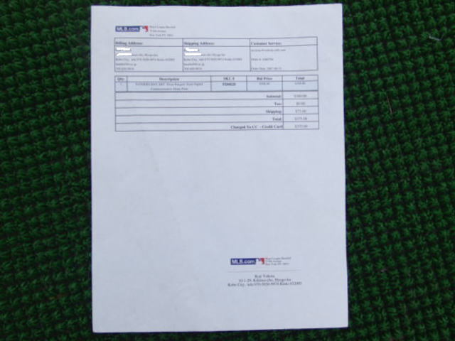 商品説明 | メジャーリーグ(MLB) テキサスレンジャーズ/Texas Rangers(ア・リーグ西地区) 2007年 サイン入り ホームベースベース オブジェ、装飾品 当時購入価格 375ドル(送料等、諸経費込み) サイズ(約): 50.0 x 50.0 x 2.5cm 重量: 訳4.7Kg コレクションの、USED品。 以前にMBLグッズをアメリカのeBay(イーベイ)で収集していた一品です。 サインはMBLの選手です。 未使用の保管品で、状態は良好です。 出品は画像にある物が全てです。 コレクション品となりますのでご理解の頂ける方のご購入をお願いいたします。 ■この他にも多数出品中ですので、よろしければその他のオークションもご覧になってみてください。 | |