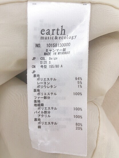 ■ earth music&ecology アースミュージック&エコロジー ファー付き 長袖 コート S ベージュ *