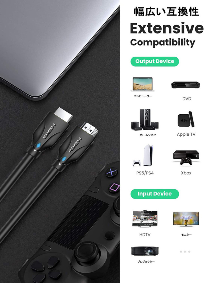 【 商品説明 】商品名:hdmiケーブル超スリムタイプ色:ブラックケーブル長さ:2m■最新のHDMI 2.1規格】ハイスピードHDMI 2.1 ケーブル。8K@60Hz 8K@50Hz, 4K@120Hz, 4K@100Hz、UHD、FHD、3D、イーサネット、オーディオリターンチャンネル、HDR 4:4カラーフォーマット、48ビット/px 色深度をサポートできる。 ■ HDMI 2.1テクノロジーは、HDMI2.0b/2.0a/2.0/1.4/1.3/1.2/1.1との下位互換性ができる。■【超高速48Gbps HDMIライン】業界標準の48Gbps帯域幅により、8K(UHD)1440p(QHD)と1080p(HD)の無制限ビデオが可能。■【適用場合】UGREEN HDMIケーブル オス-オス。主にテレビ、モニターとハードディスクレコーダー、ゲーム機などの間を接続する際に用いられ、映像や音声などを1本のケーブルにまとめて送ります。大画面のHDビジュアル体験及びゲームプレイを実現できます。それがホームシアター、または劇場の再生などの場所に非常に適しています。■【3D視覚効果】フルハイビジョン対応で高精細な画像も重厚な音も劣化せず再現可能。