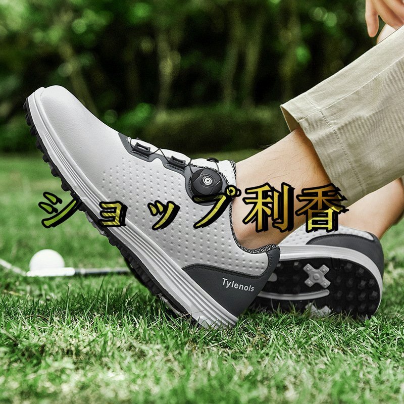 新作 ゴルフシューズ メンズ ゴルフスニーカ ダイヤル式 絶賛 強い弾力性 運動靴 スポーツシューズ 防水防滑 耐磨 ゴルフ用品 黒 26cm