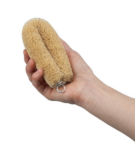 やや硬い繊維のホワイトパームを使用しています。ごぼうや人参の皮むきに里芋の泥落しとしても最適です。