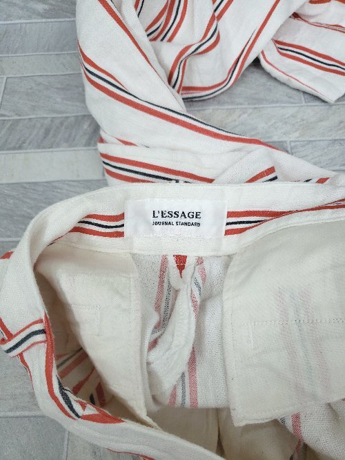 ◇ JOURNAL STANDARD L'ESSAGE レサージュ ストライプ パンツ サイズ38 オフホワイト系 レッド レディース P
